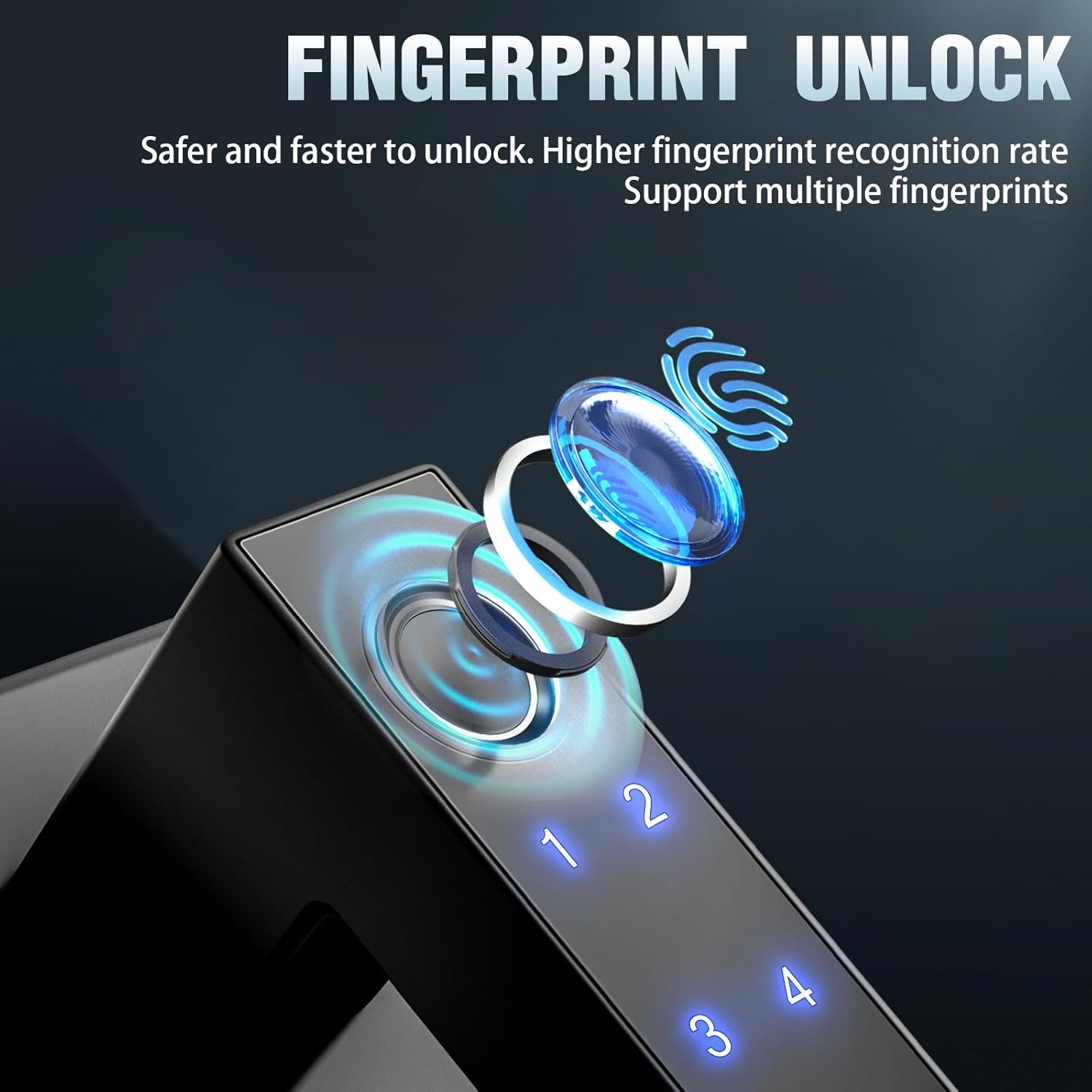 The fingerprint door lock made of durable zinc alloy, blends seamlessly with most home designs and features a full mirror touch backlit keypad. Utilizing the latest biometric fingerprint technology, it takes only 1 second to unlock the door with your fingerprint. You can add up to 50 sets of fingerprints.