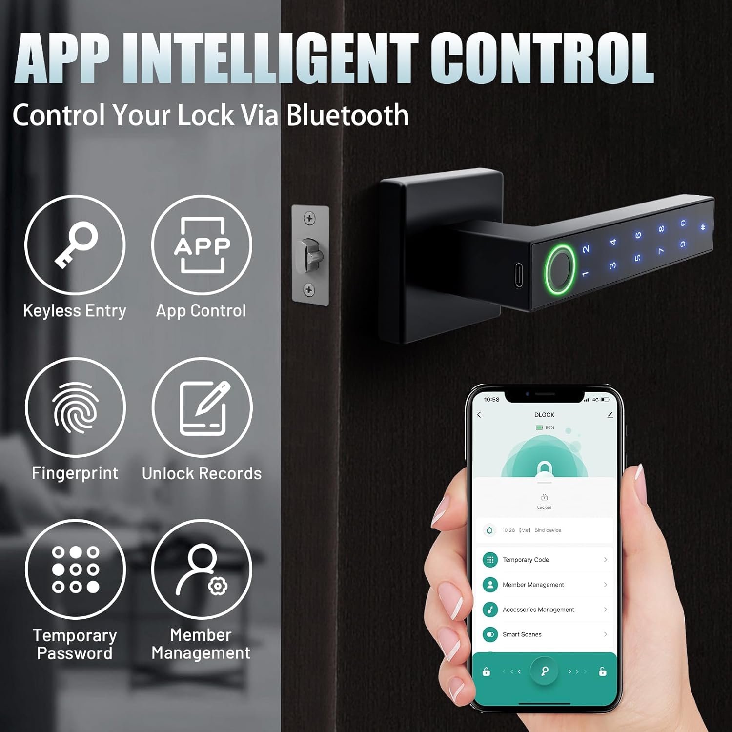 Fingerprint Door Lock, Smart Door Knob, Keyless Entry Door Lock with Handle, Fingerprint Door Knob with Keypad for Bedroom Hotel Office, Biometric Door Lock with App Control