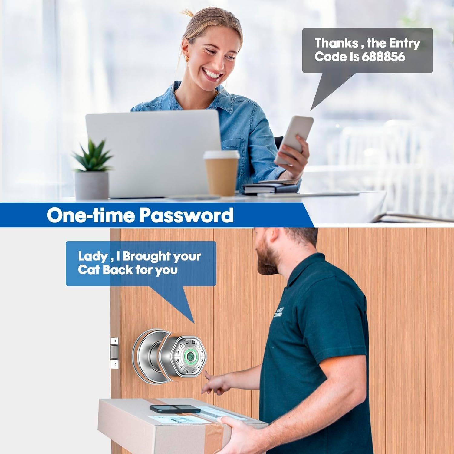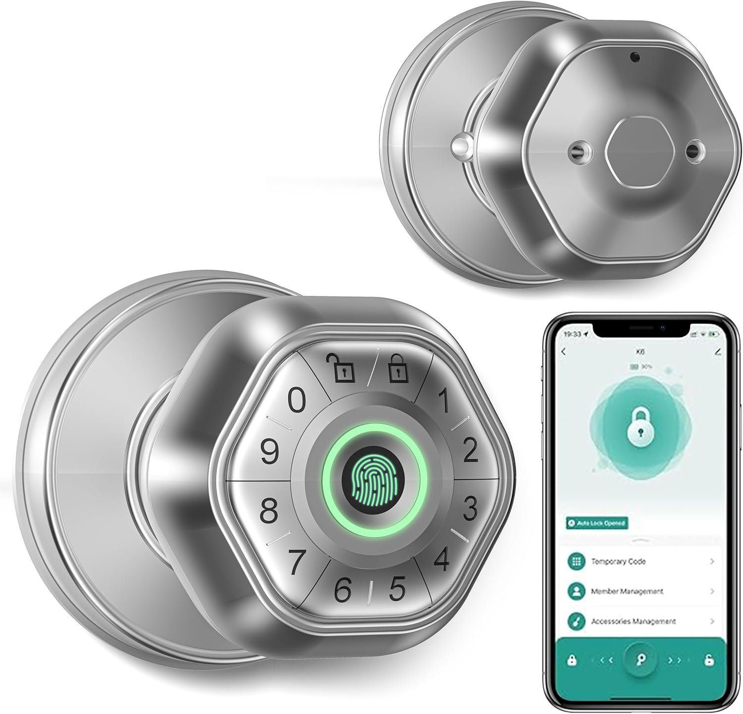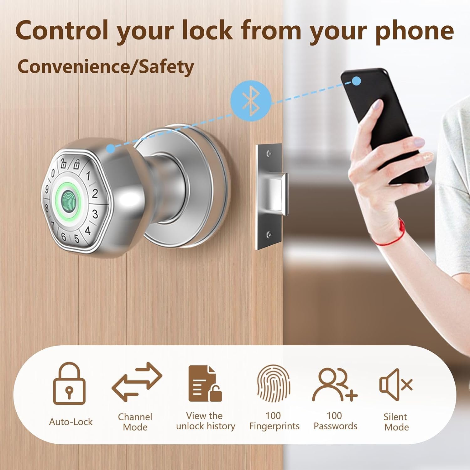 【Four-in-one】Fingerprint bedroom door lock: anti-peeping password + fingerprint unlocking + 2 mechanical keys + APP control, 0.2 seconds recognition, door opening within 1 second, 100 fingerprints and 100 passwords can be added