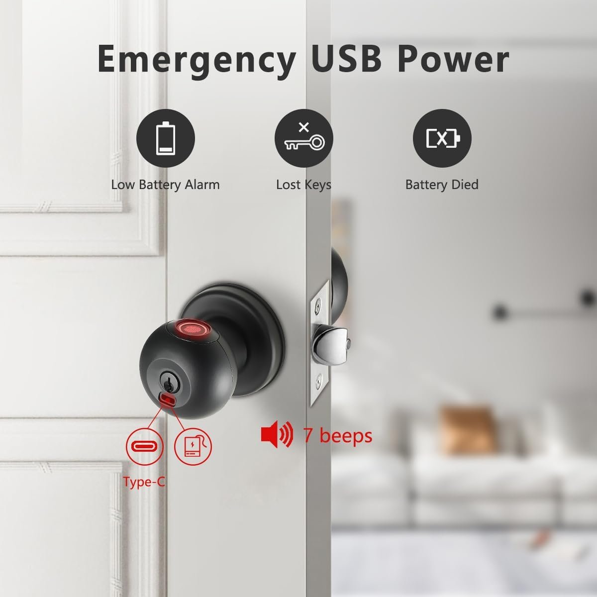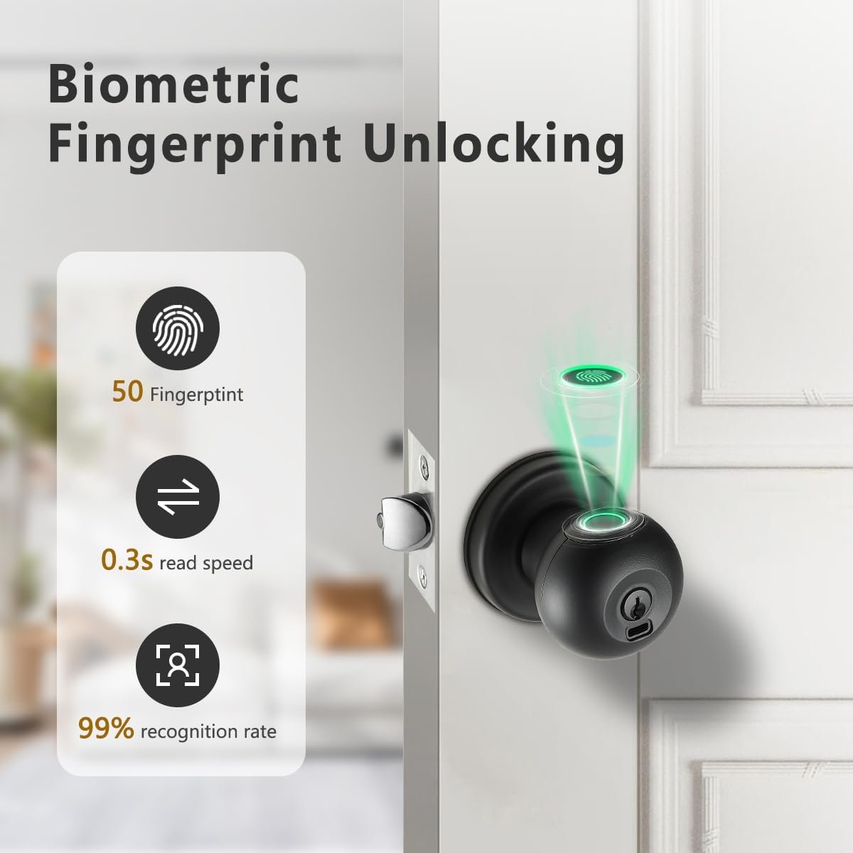 2 Unlocking Ways: Buoan Smart Door Knob supports fingerprint unlocking and mechanical backup key unlocking. Provide a more convenient and secure way to enter your home!