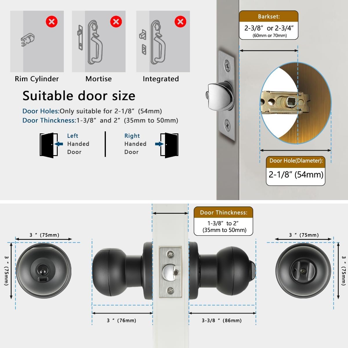 Easy to Install: The fingerprint door knob can be easily installed with a screwdriver in minutes and fits most US door. And suitable for residence, front door, bedroom, apartment, office, garage, hotel, etc.