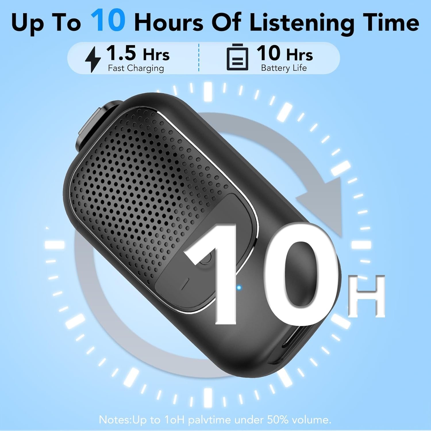 LONG-LASTING BATTERY FOR UNINTERRUPTED MUSIC: The Wearable Speaker boasts a 600mAh battery with Type-C fast-charging, Speakers Wireless Bluetooth Charge for 2 hours, use for 10 hours . As a reliable bluetooth speaker wireless, it’s perfect for morning wake-up melodies to evening tunes. Enjoy uninterrupted music from dawn to dusk with this portable speakers wireless bluetooth.