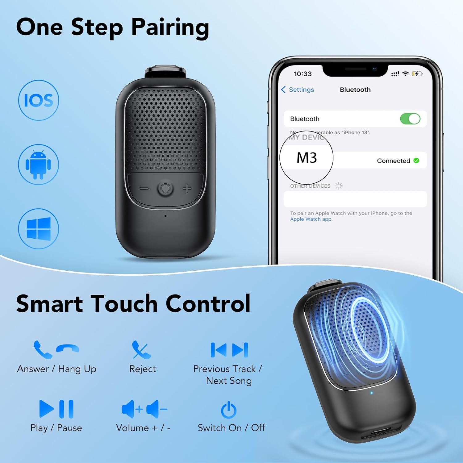 M3 Bluetooth Speaker – TWS: Our compact, horn-shaped bluetooth speaker boasts Bluetooth 5.3 for fast pairing & stable connections. Its 27.8mm*11.6mm design delivers powerful 4Ω/2W audio with -38db (±3) mic sensitivity. Perfect as a wearable bluetooth speaker, mini speakerr, or portable wireless speaker, enjoy high-quality sound on the go.