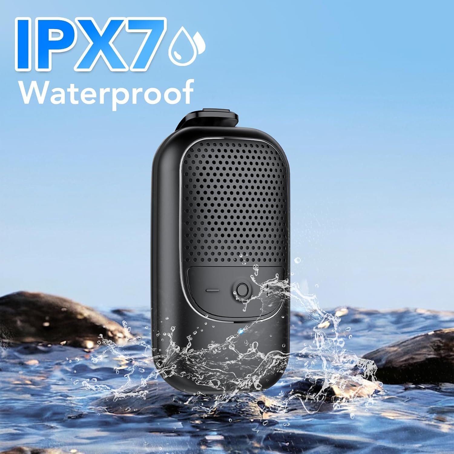 IPX7 WATERPROOF BLUETOOTH SPEAKER: This Wearable Bluetooth Speaker has an IPX7 waterproof rating and can last up to 30 minutes at 1 meter underwater. Excellent speaker for outdoor/outdoor adventures with hands-free music/hands-free calling