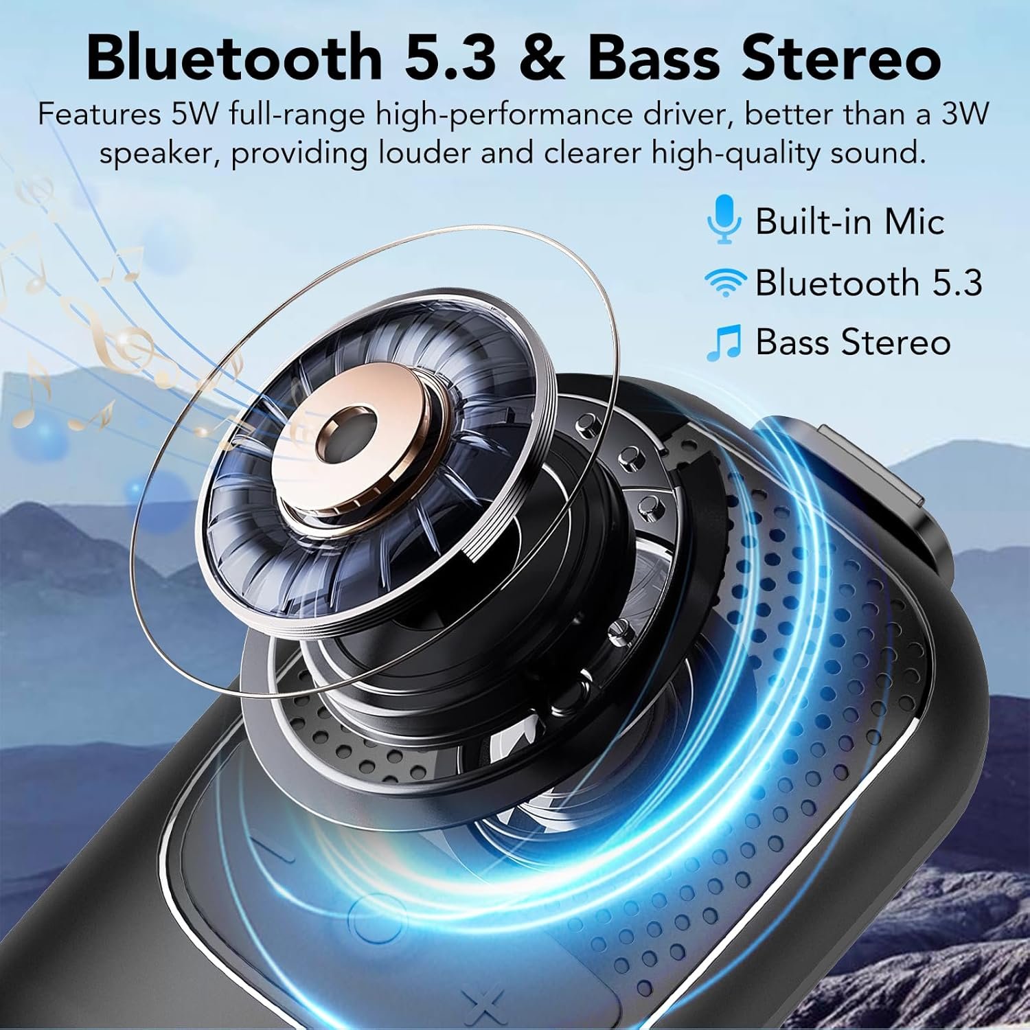 LIGHTWEIGHT AND CONVENIENT DESIGN: This astonishing 3-ounce mini bluetooth speaker revolutionizes the weight perception of traditional bluetooth speaker.The wireless speaker ultra-light design offers unparalleled convenience, fitting seamlessly in your pocket or bag. Whether you’re exploring outdoors/commuting/socializing, this wearable bluetooth speaker becomes your personal music companion, allowing you to enjoy your favorite melodies anytime, anywhere.
