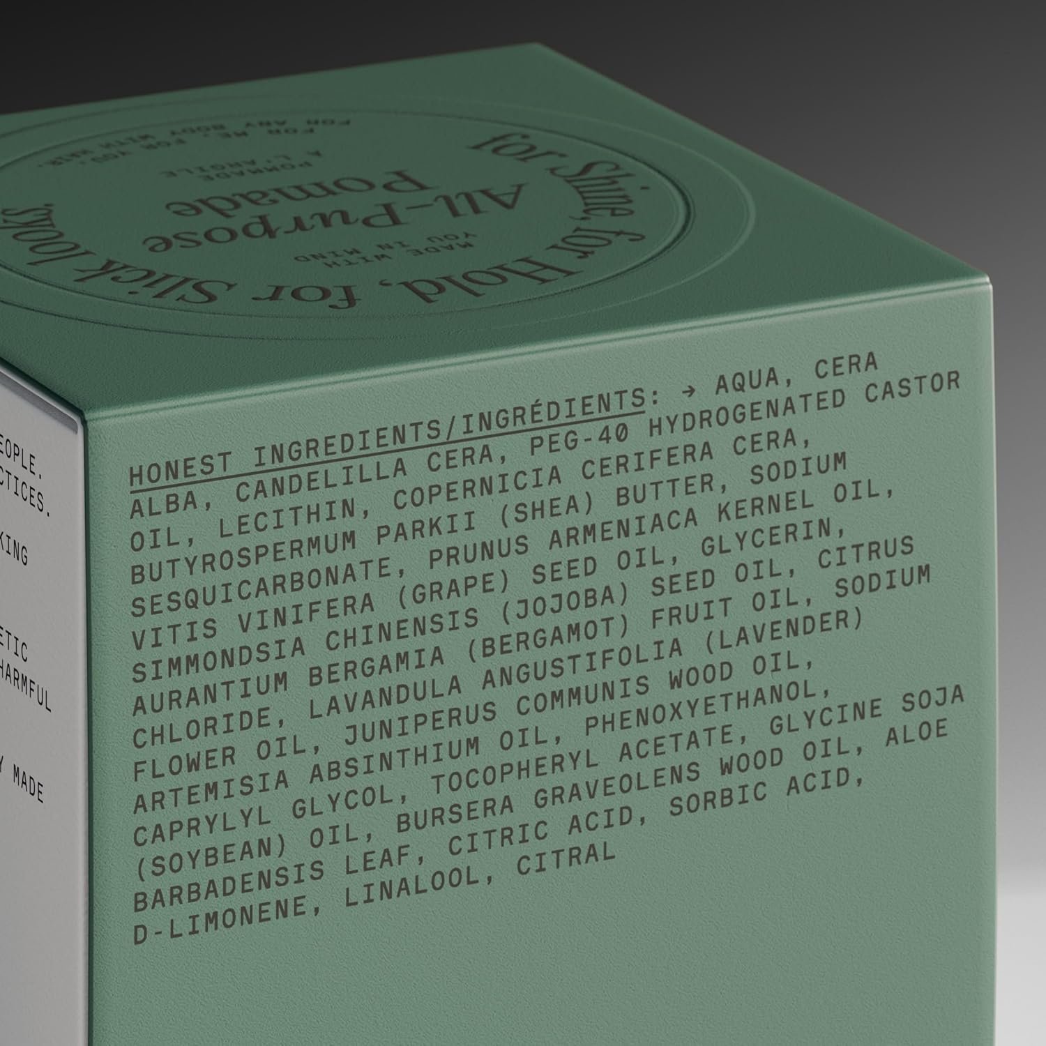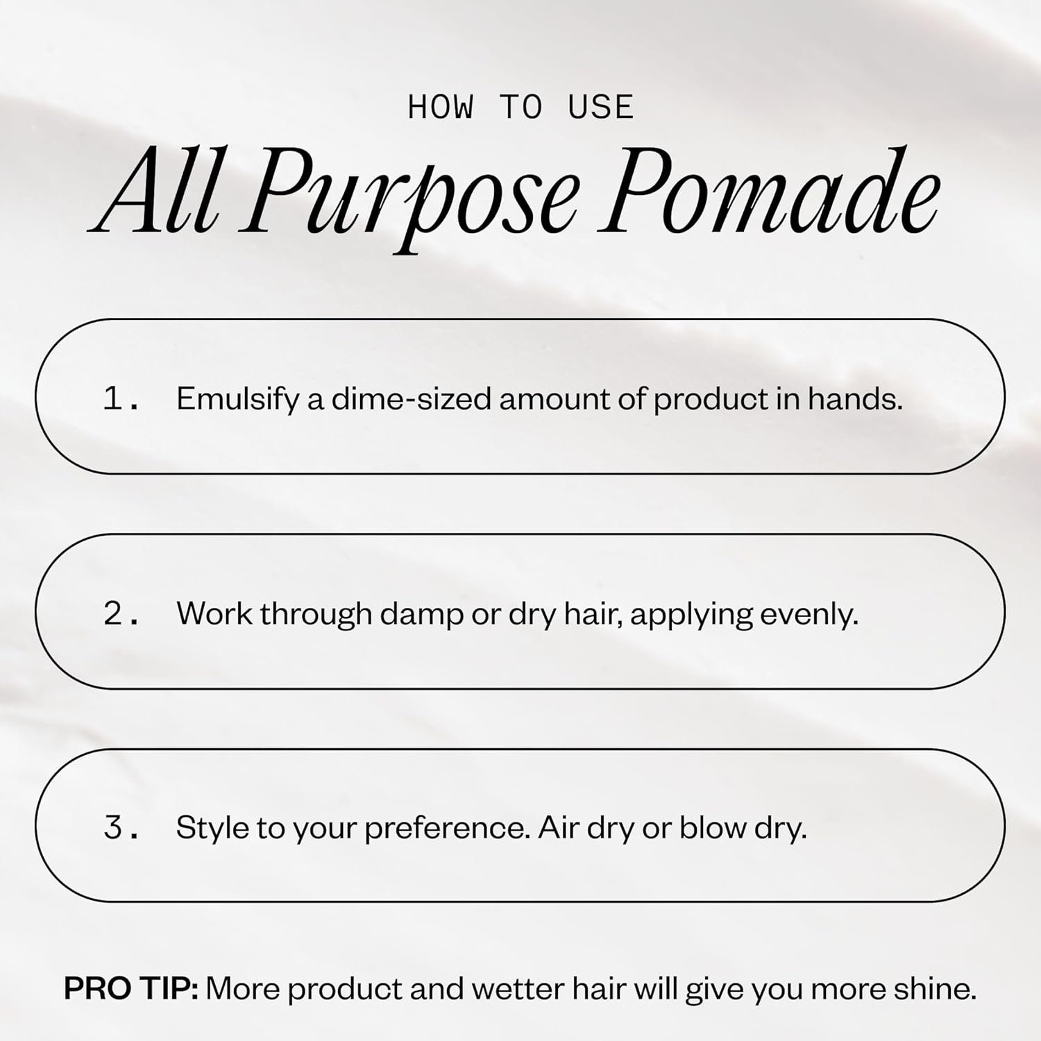 ALL PURPOSE POMADE. Our All-Purpose Hair Pomade is just that, all-purpose. Use a small amount to contorl flyaways or stack more on for a more slick look. This styler provides a low-shine high hold that’ll last all day and can be restyled on the go. Gentle on your hair, but firm on styling.