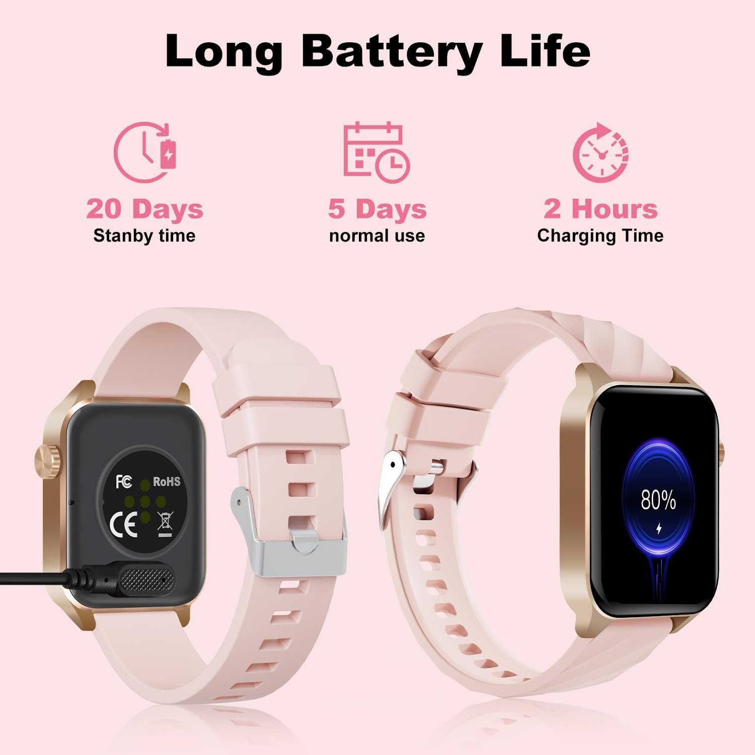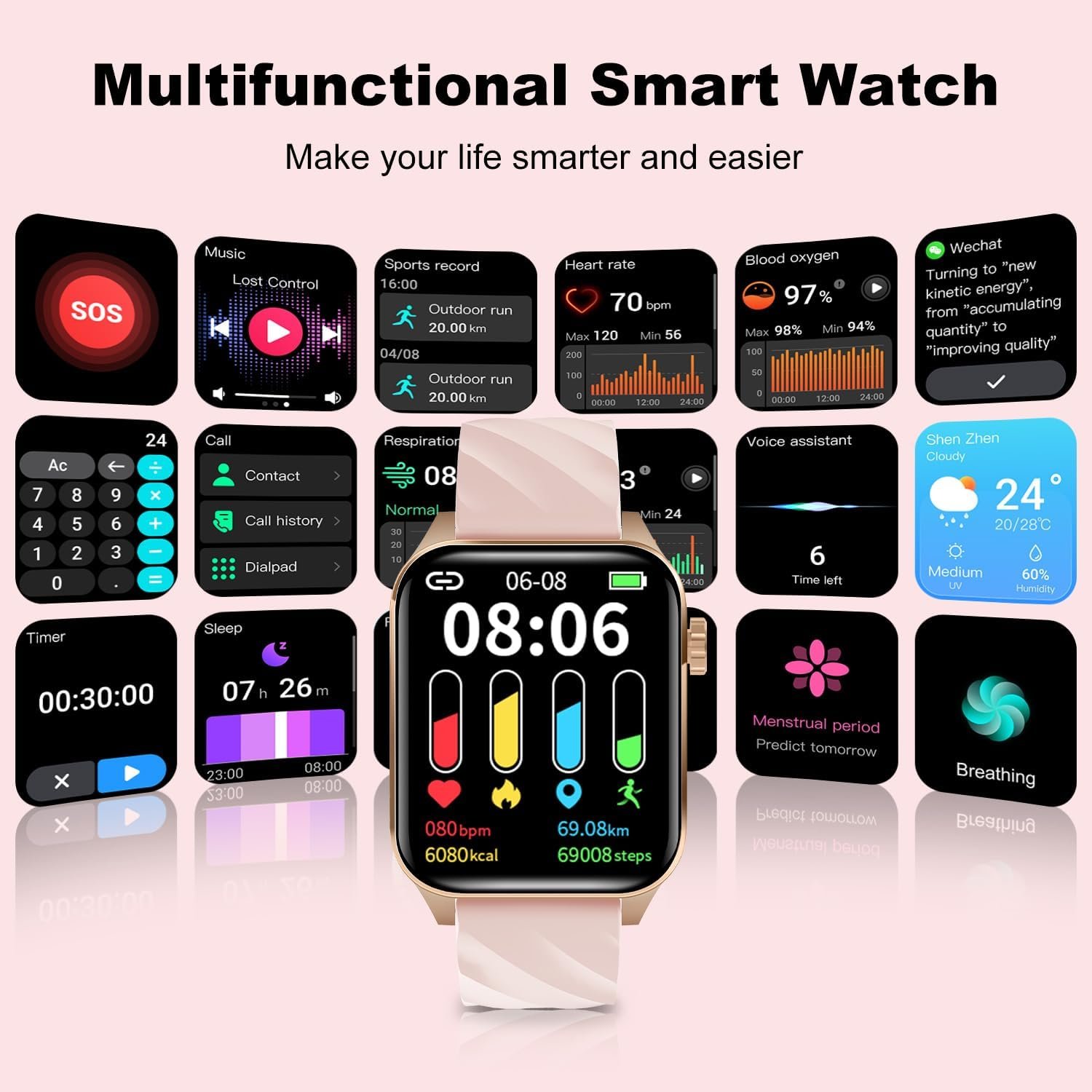 【Multifunctional Watch】The fitness tracker watch is an excellent life assistant and has a lot of useful functions such as alarm clock, weather forecasts, music player, female cycle reminders, camera control, find phone, timer, stopwatch, calculator, calendar, and more.