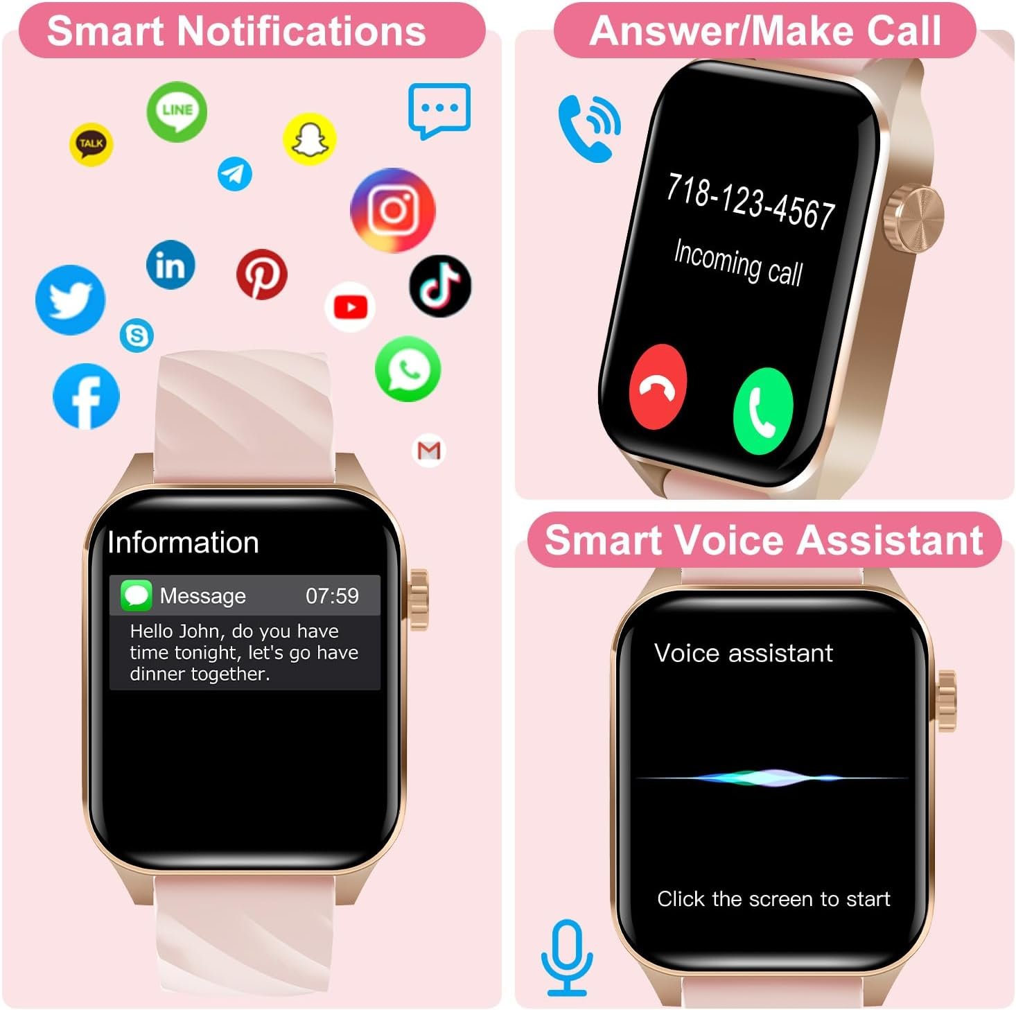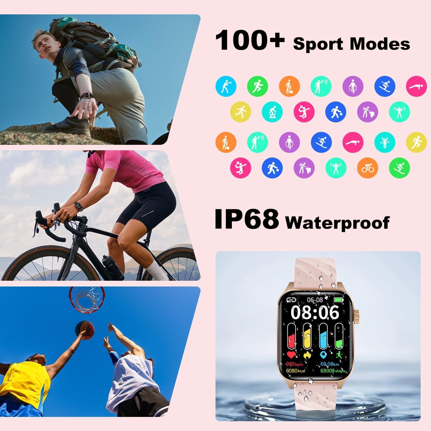 Fitness Tracker (Answer/Make Calls), 1.85″ Smart Watch with 24/7 Heart Rate, Blood Oxygen Monitor, Sleep Tracker, 100 Sport Mode, IP68 Waterproof Activity Tracker, Compatible with iOS & Android,Pink
