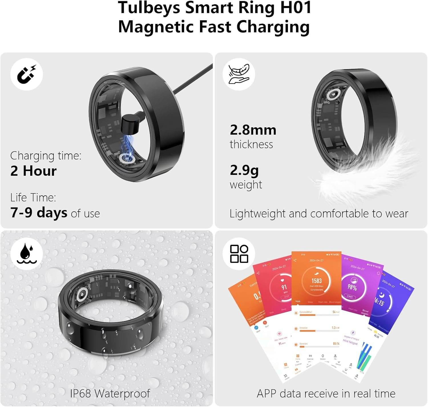 ALL-DAY WEARABLE DESIGN: Ultra-light stainless steel ring is comfortable enough to wear all day and night with IP68 waterproof protection for swimming and rainy activities