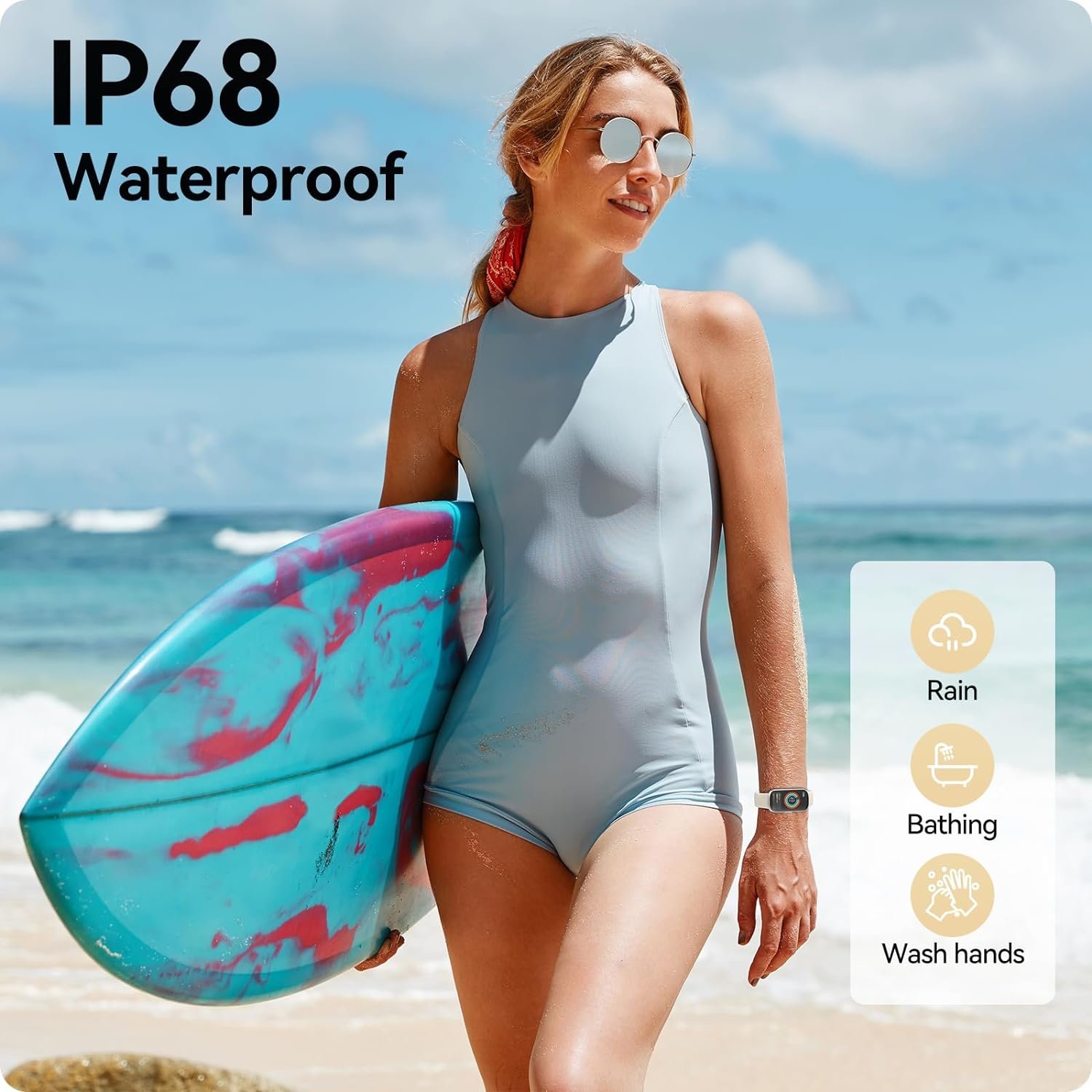 【IP68 Waterproof & 20 Days Standby】The smart watch features IP68 waterproof, making it suitable for daily activities like handwashing, showers, and rainy weather. Equipped with a large capacity and low power consumption design, just magnetic charging of 1.5-2 hours, it offers 5-7 days of continuous usage and 20 days of standby time, staying away from charging anxiety.