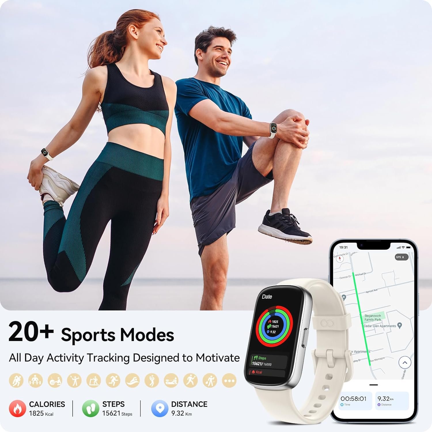 【All-Day Activity Tracking】The fitness watch comes with 20+ sports modes, which cover almost all sports types no matter whether you exercise outdoors or indoors, such as walking, running, mountain, yoga, hiking, cycling, treadmill, basketball, etc. The fitness band records calories, steps, distances in real-time, lets you clearly understand the amount of exercise your body does every day, you can also set reasonable workout goals for yourself and provide you with more effective sports guidance.