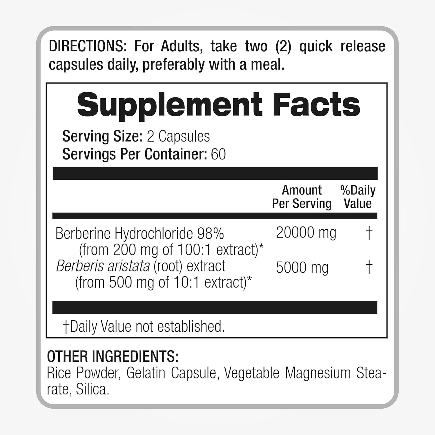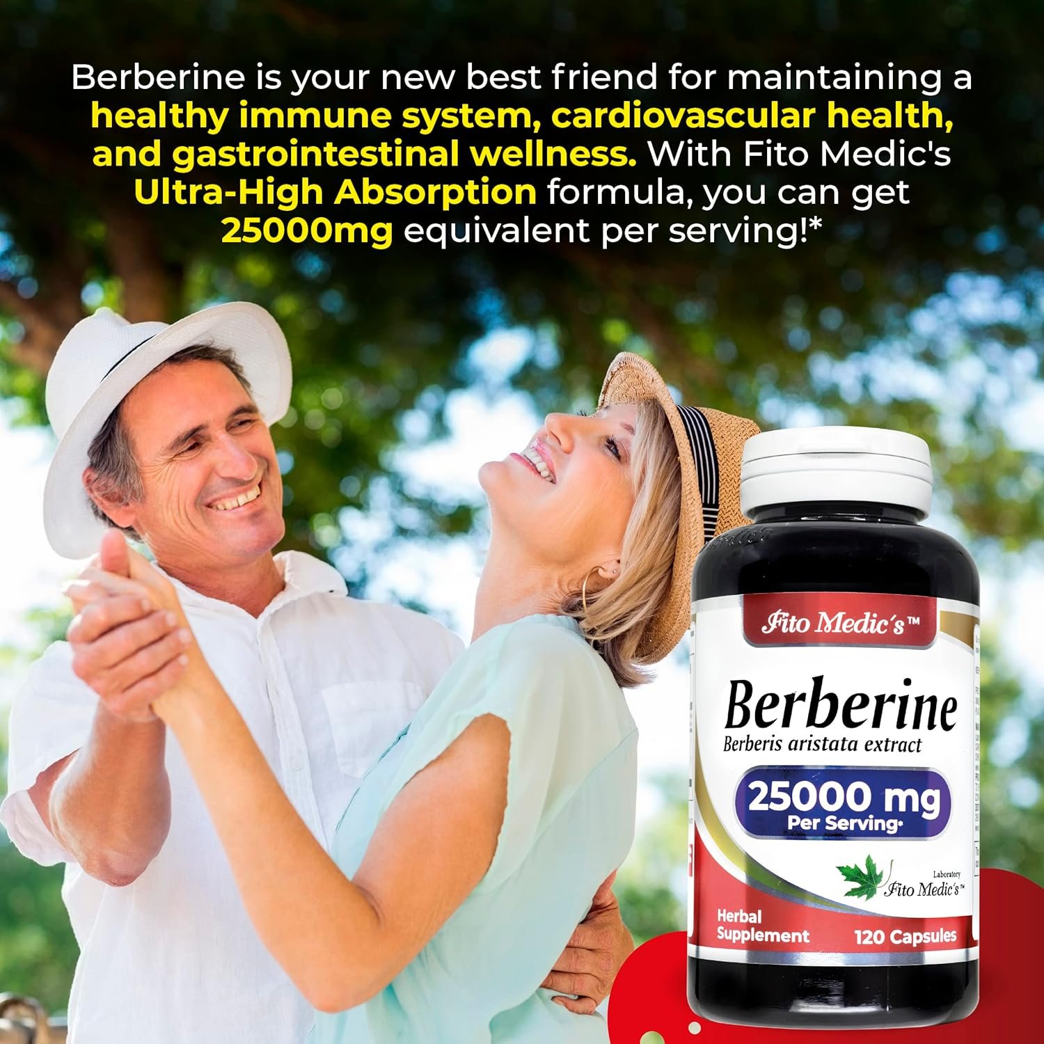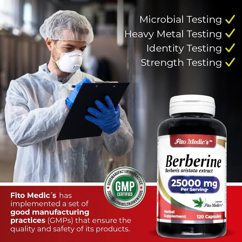 – Fito Medic’s Berberine is an ultra-high absorption supplement that provides 25000 mg of berberine equivalent per serving. It is produced from 200 mg of berberine that is 98% highly purified and bioavailable, and 500 mg of Berberis Aristata that is 10:1 concentrated. This supplement supports a healthy immune system and improves cardiovascular heart and gastrointestinal wellness.