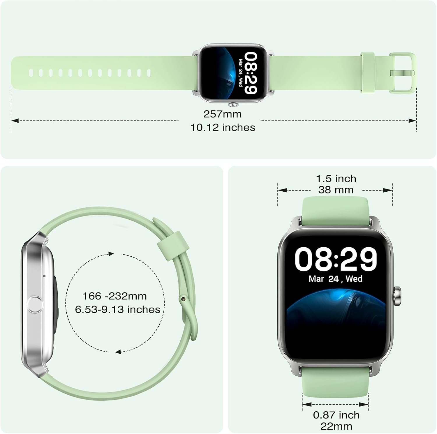 Our Fitpolo smart watch supports 105+ sports modes including swimming, walking, running, cycling, skipping, badminton, basketball, soccer, yoga and so on. Help you achieve your exercise goals. It meets IP68 waterproof standard, so you don’t have to worry about washing your hands, face or sweating when using it. (Do not recommend to use for baths, saunas, hot springs, etc.)