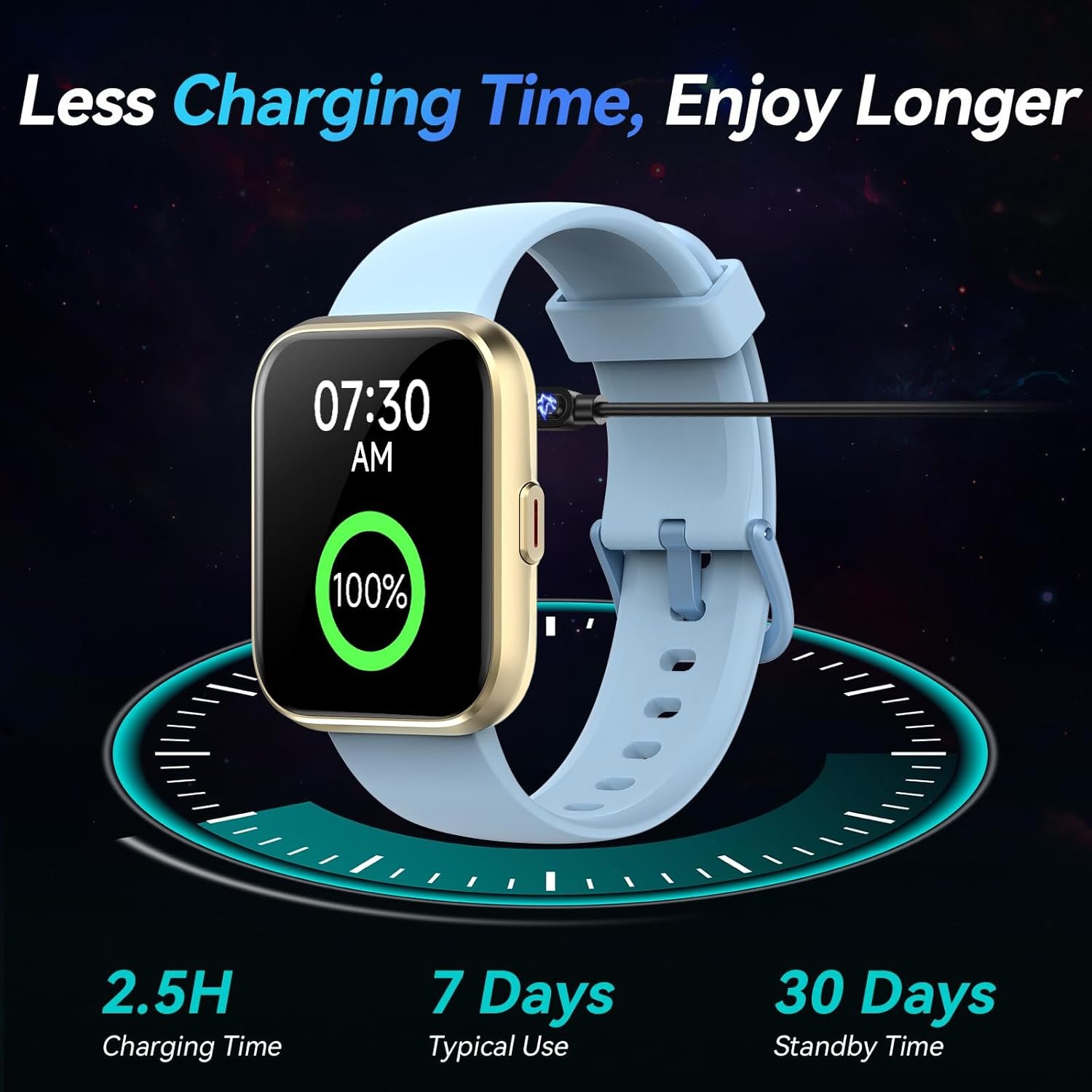 【Wide Compatibility & 7-Days Battery Life】Effortlessly connect with iOS or Android smartphones (iOS 9.0 or above, Android 6.0 or above). Compatible with a wide range of devices, including iPhone 6~iPhone 15 series, Samsung, Google Pixel, Redmi, Nexus, Motorola, Xiaomi, Huawei, Oneplus, Sony, and more. With a quick 2.5 hours of charging, the smartwatch boasts an impressive 7-day battery life with typical use and up to 30 days of standby time.