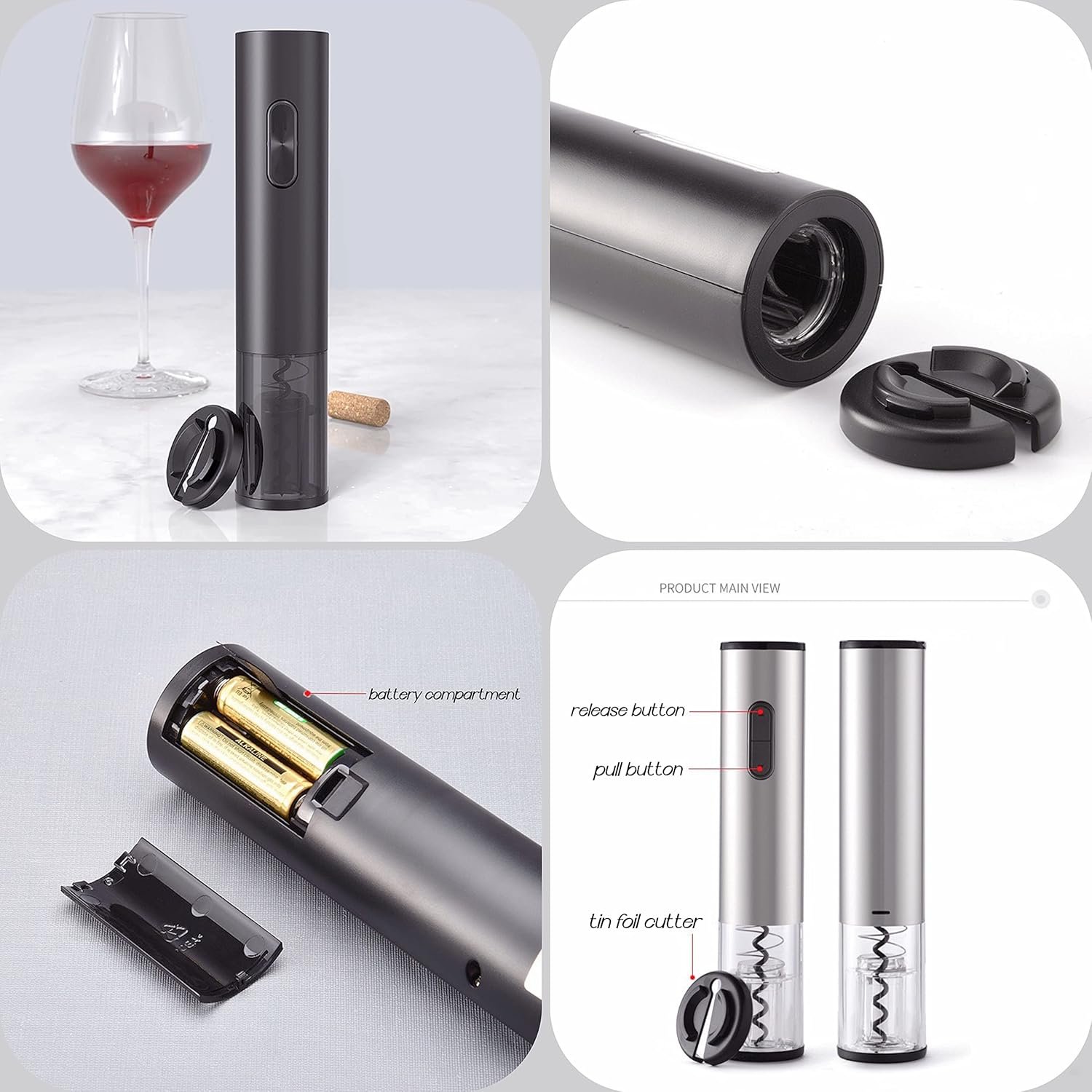 【Powerful and Durable】This electric wine opener is powered by 4 AA batteries (Batteries Not Included), with powerful system it allows to open your wine bottles in seconds and it can open up to 100 bottles at one time (depends on the battery). Everything in the set Everything is made of food-grade materials and stainless steel, so it is very durable – even camping can take it. After all, the bottle opener only needs 4 AA batteries.