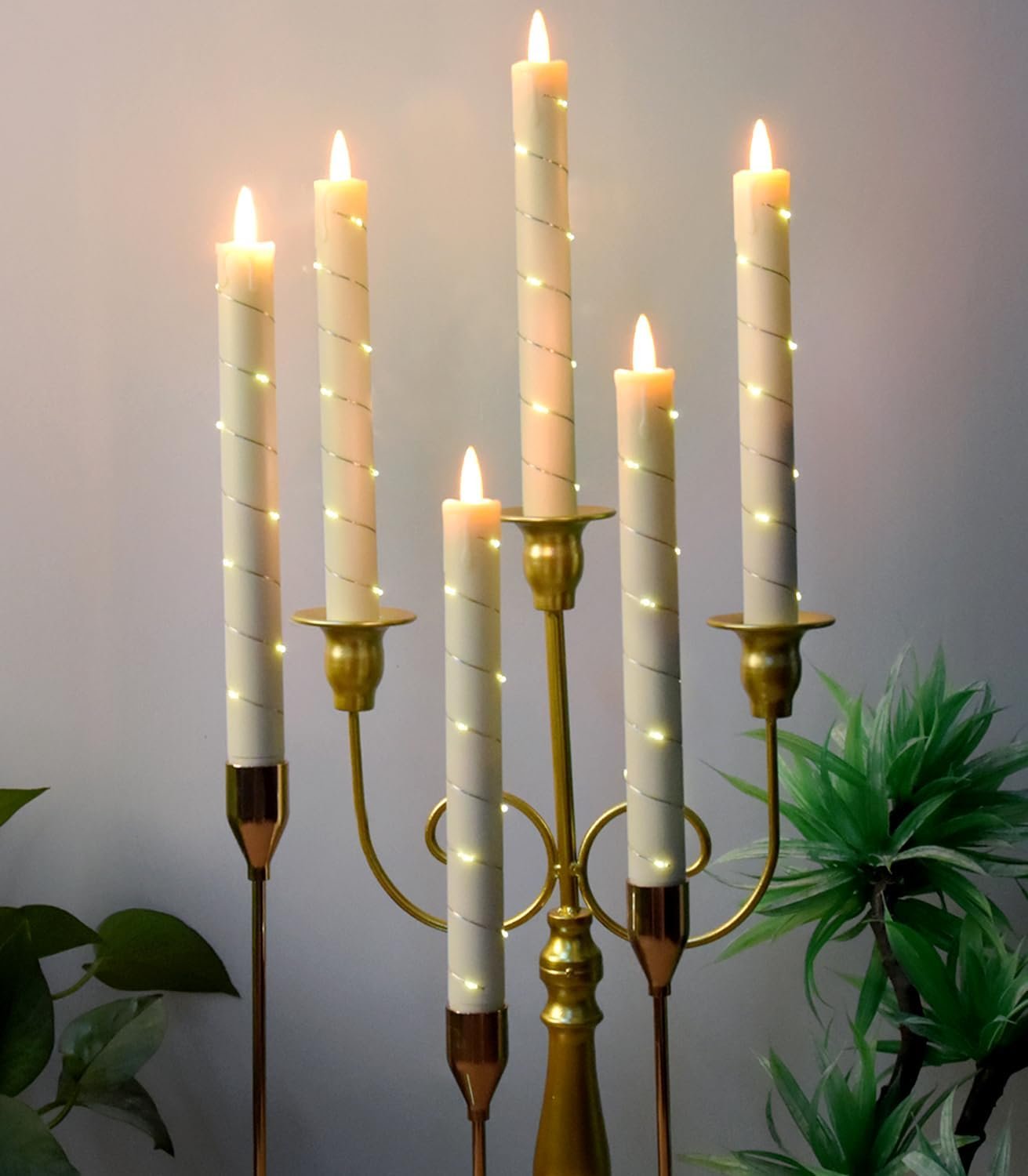 ✔ Patent embedded starlight string technology: Each candle is wrapped in a silver string. These light strings consist of 12 to 14 LED fairy lights, providing small and bright dots and a unique and attractive appearance. Make candles look more noble, warm, and romantic.
