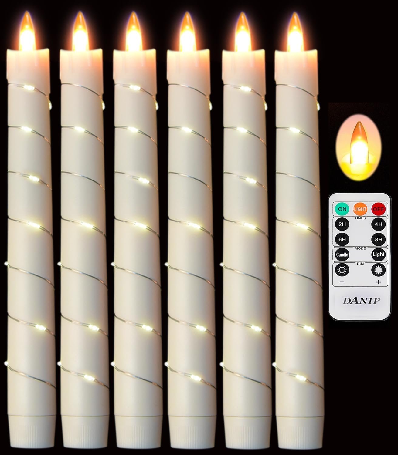 ✔ Ivory white: Candles are made of high-quality and safe plastic. The ivory colored lighting effect is closer to the effect of real wax, and the emitted light source effect is more realistic. These candles have a height of 9.6 inches and a diameter of 0.78 inches. There are 6 candles in the package, plus a remote control, and 6 candle bases are included.