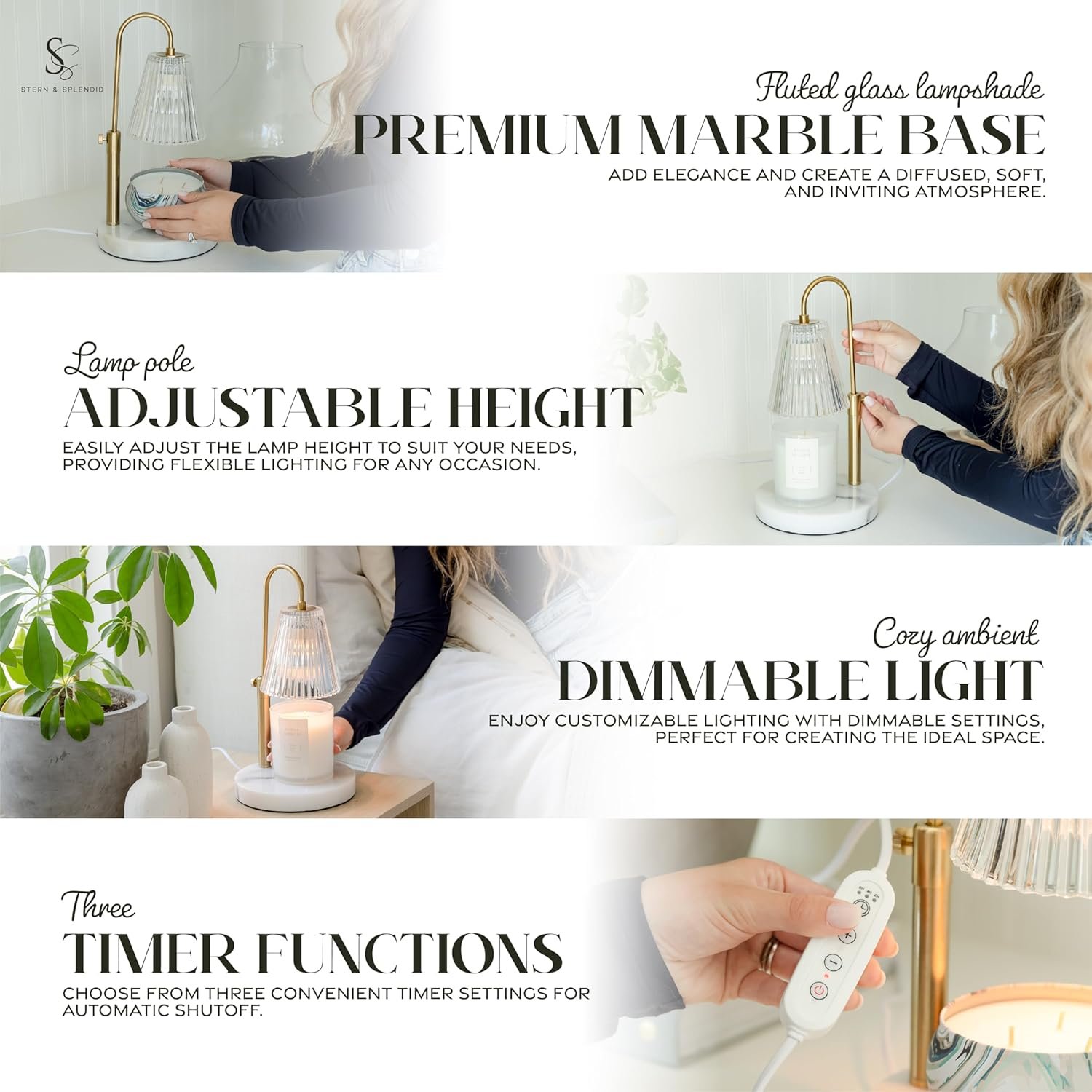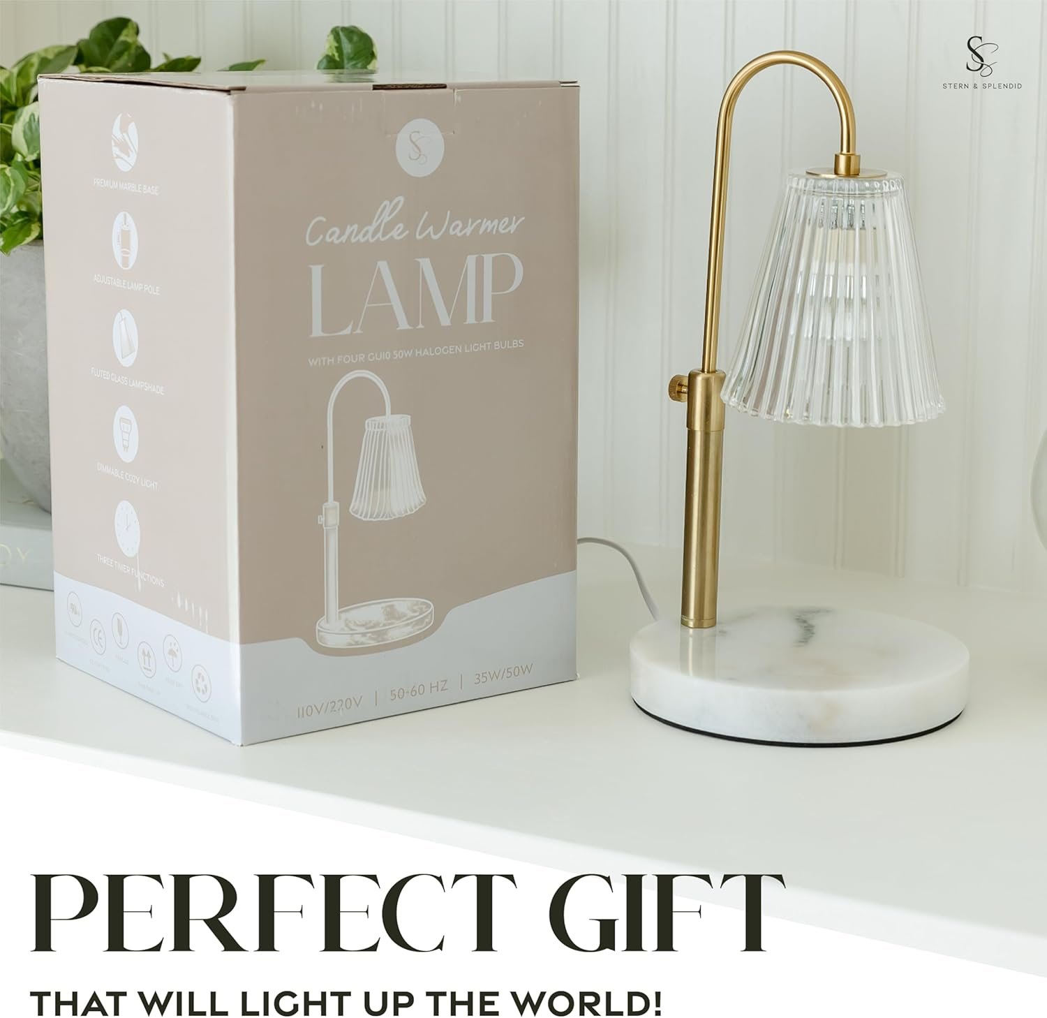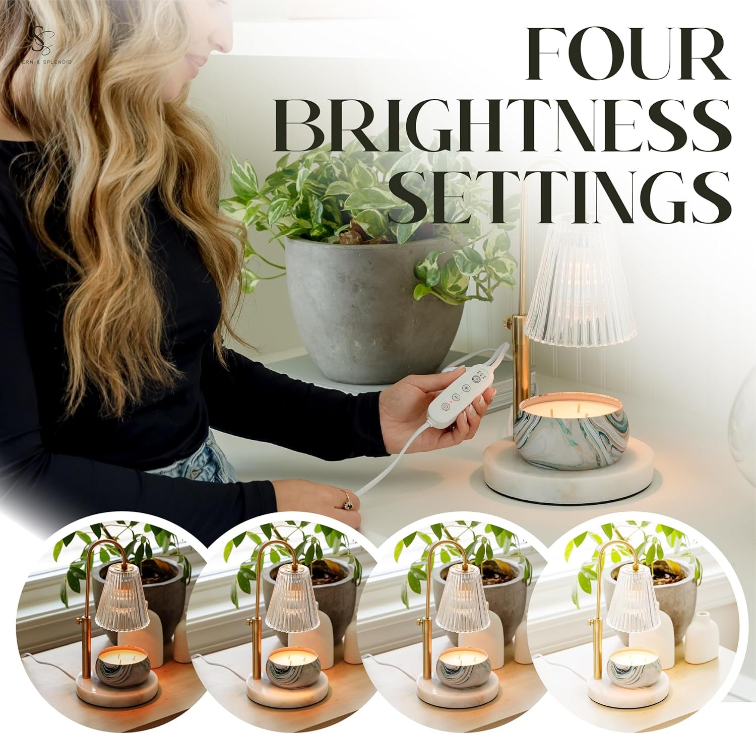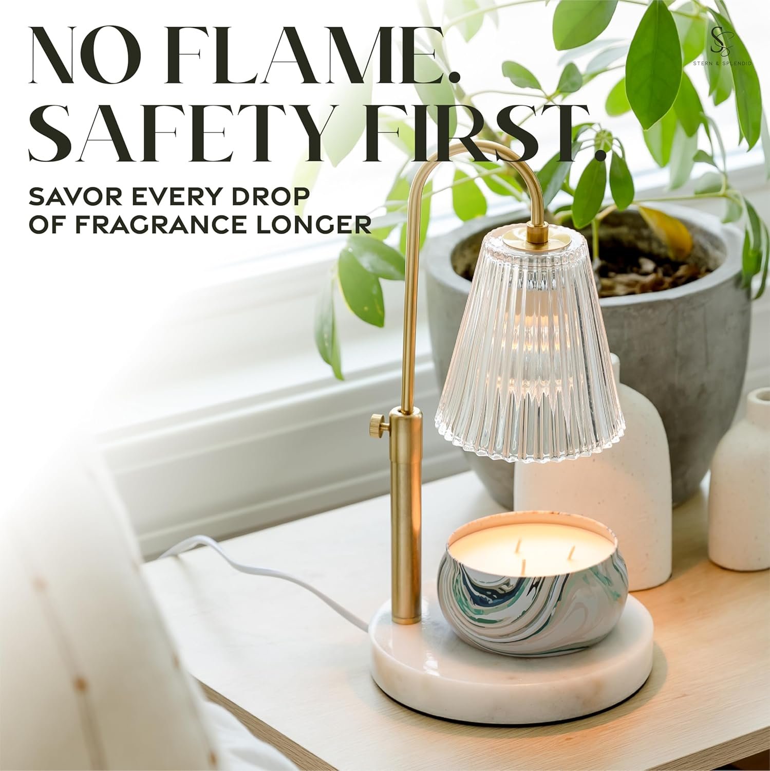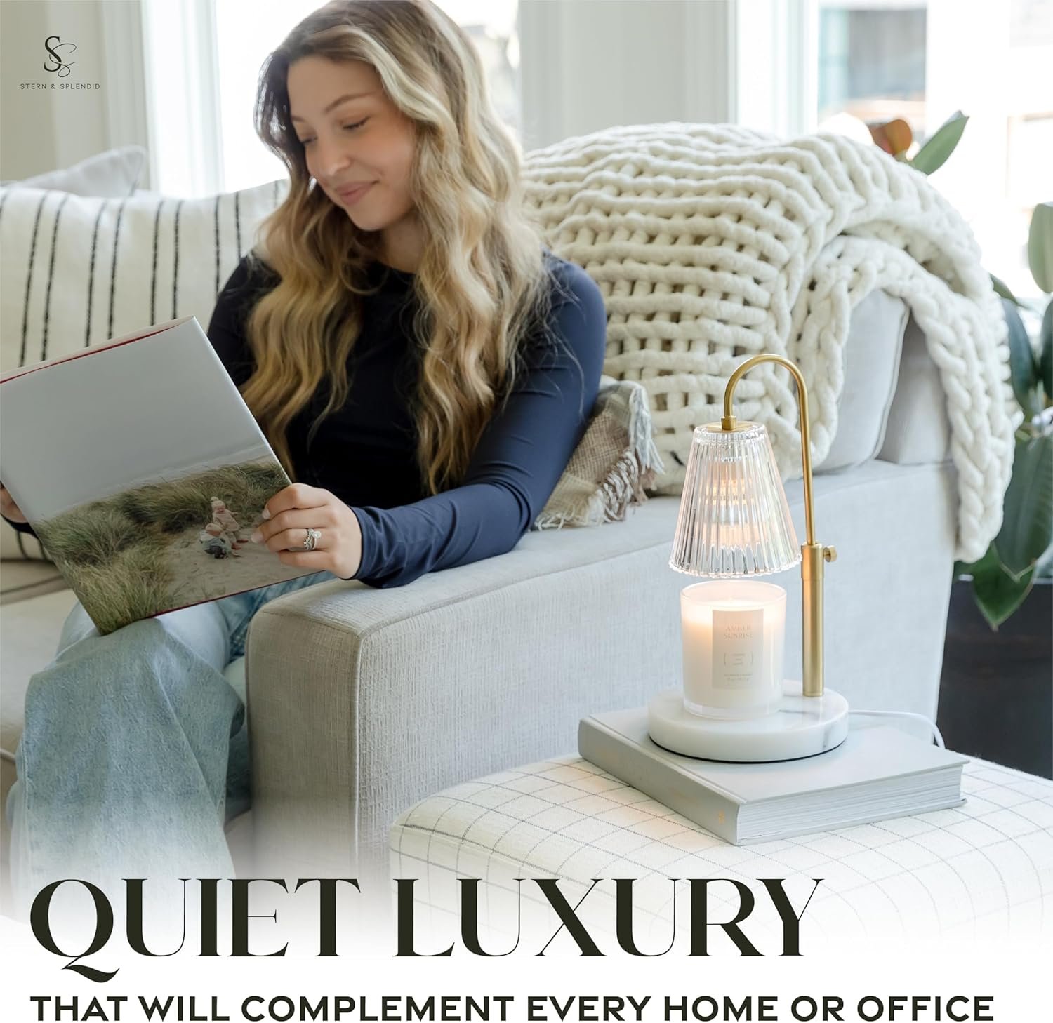 A Discreet Touch of Luxury for Any Space: Our candle warmer light, with its white marble base, gold pole, and clear glass shade, effortlessly blends into any room; The candle heater is simple, yet stylish, elevating your space with a subtle touch of luxury