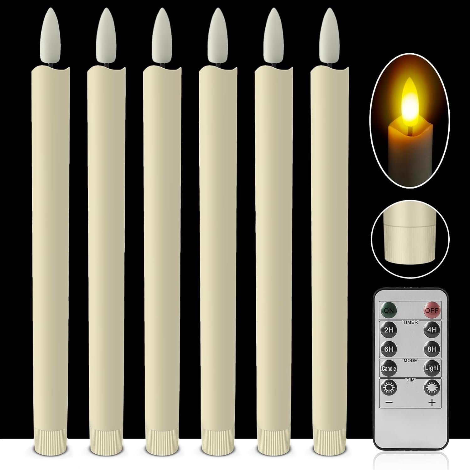 Flameless Ivory Taper Candles Flickering With 10-Key Remote, Window Candles Battery Operated 9.8″ LED Warm 3D Wick Lights, Fake Electric Candles for Aniversary, Wedding, Christmas, Home Decor (6Pack)