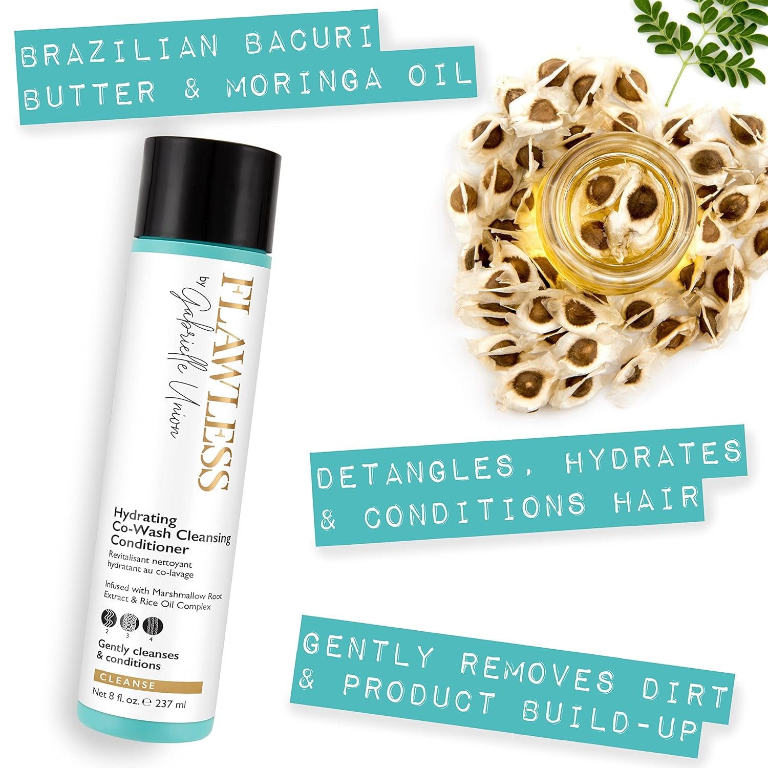 Remove dirt and product build-up with Coconut, Castor Seed, Passionfruit seed, and Rice Oils.