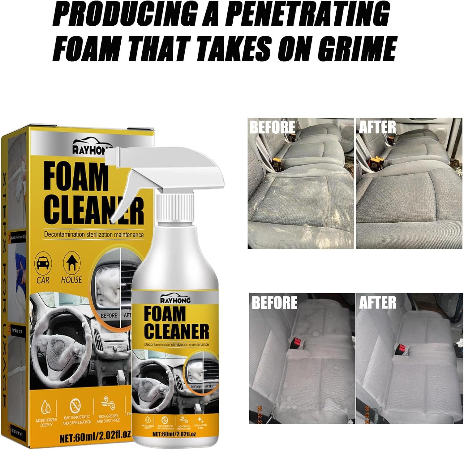 🚗【Safely Wash And Maintain Your Vehicle】The Ray Hong foam cleaner prevents fading, aging, cracking and provides protection. The foam cleaner for car interior is perfect for your furniture and car dashboards, vinyl, consoles, leather car details and more.