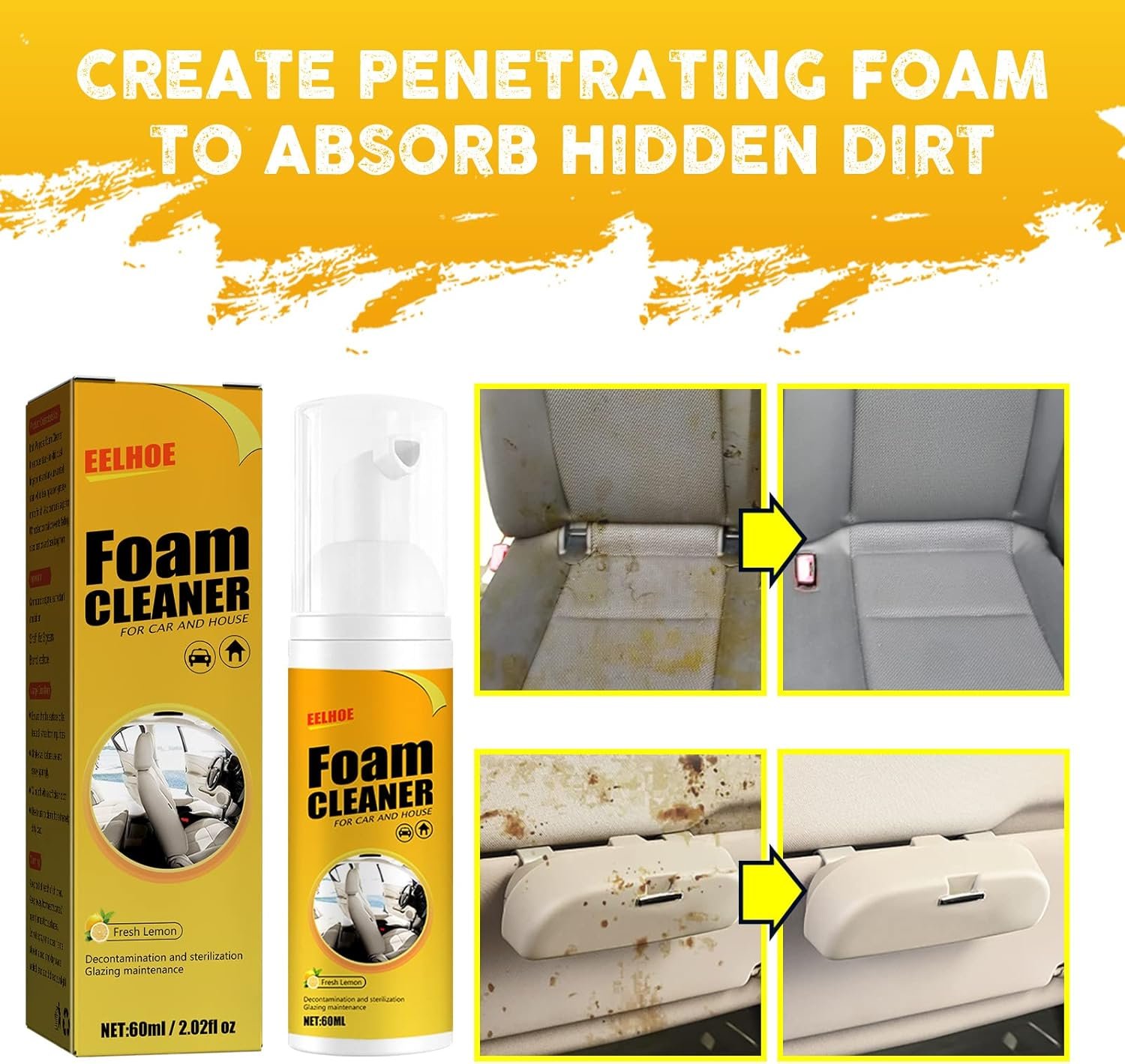 Versatile Cleaning for Multiple Surfaces: This Foam Cleaner is ideal for cleaning a wide range of surfaces in both your car and home. From upholstery to countertops, it easily lifts dirt, grease, and stains, ensuring that your car interiors and home spaces stay spotless and fresh
