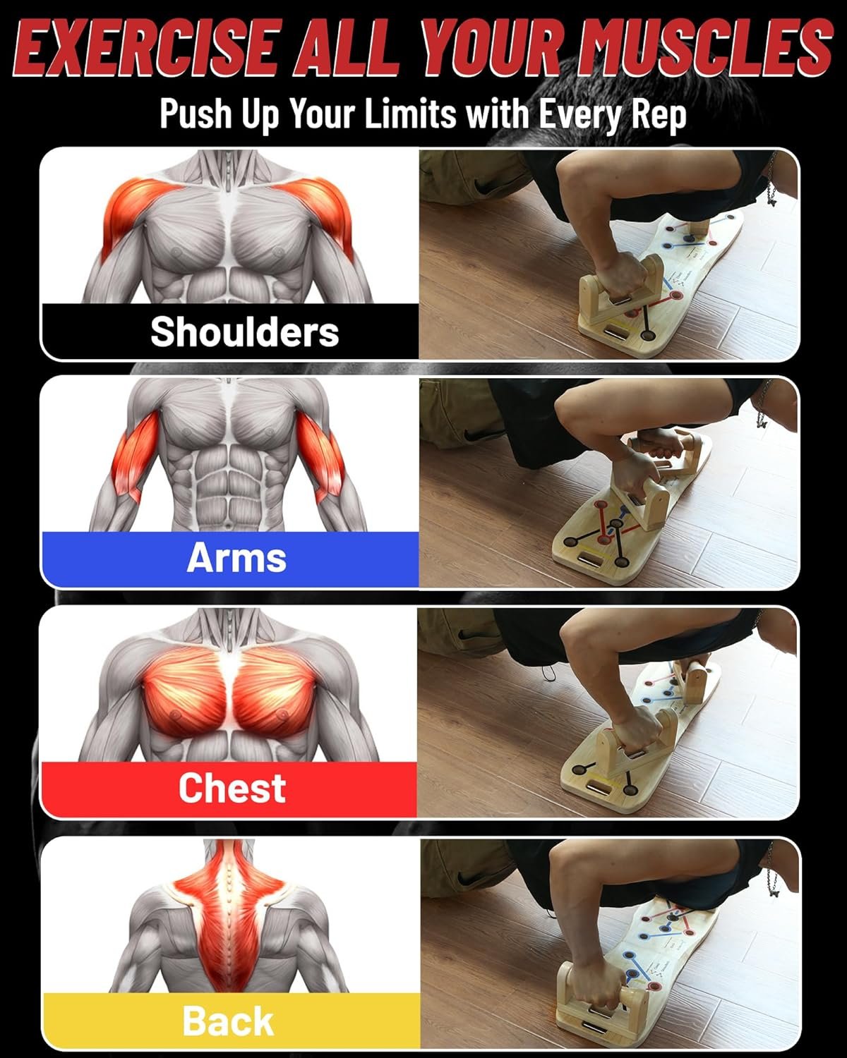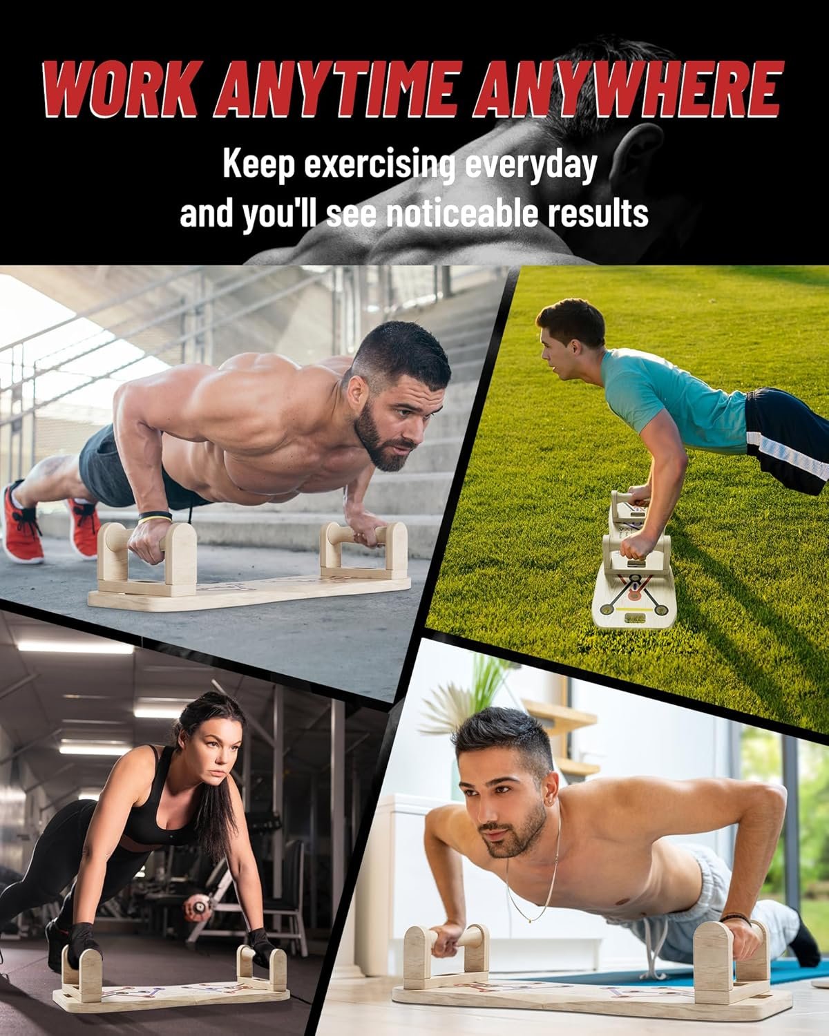 💪𝑼𝒏𝒎𝒂𝒕𝒄𝒉𝒆𝒅 𝑫𝒖𝒓𝒂𝒃𝒊𝒍𝒊𝒕𝒚 – Experience the strength and reliability of premium wood. Our push-up board is designed to endure intense workouts, offering a steady and long-lasting workout partner that can tackle even the most challenging training sessions without bending or breaking over time