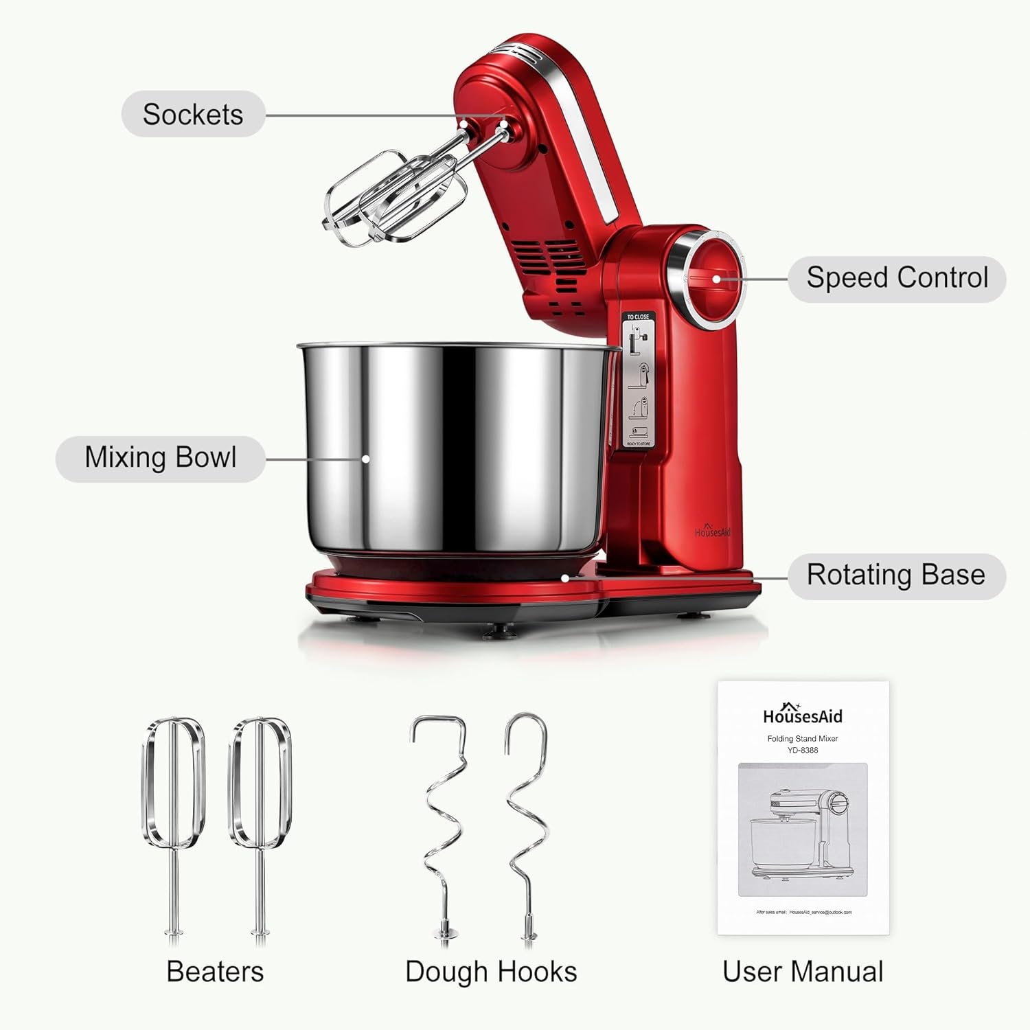 HousesAid specializes in home appliances to bring more convenience to your life. The YD-8388 stand mixer is the perfect accessory for your kitchen.