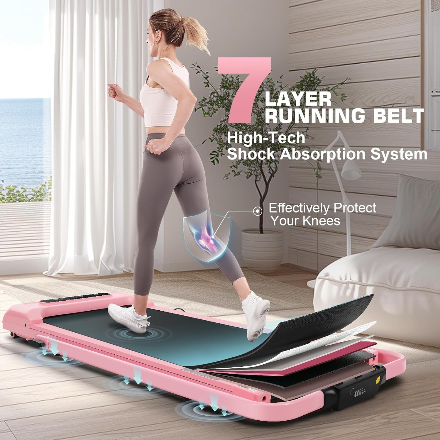 7. Diamond-textured elastic running belt with dual shock absorption, offering excellent knee protection;