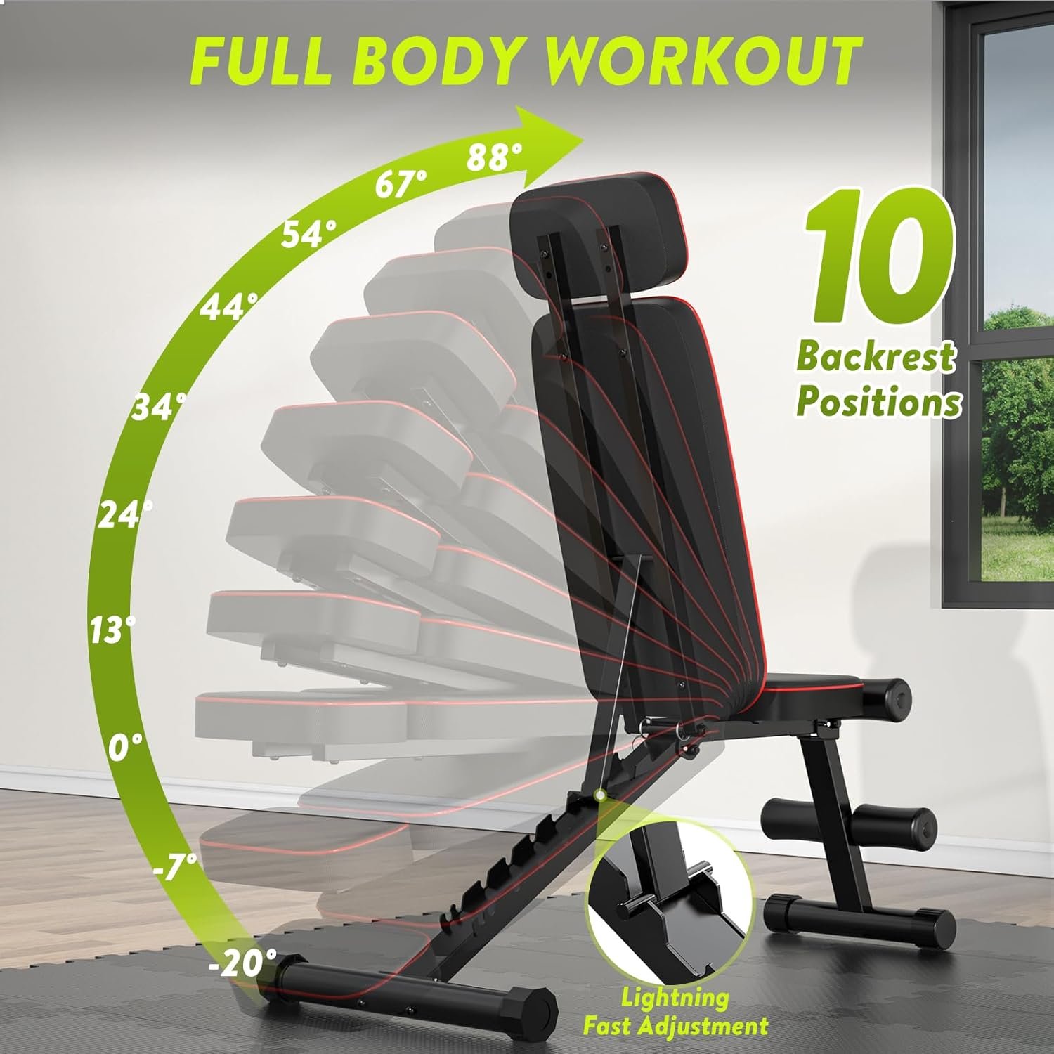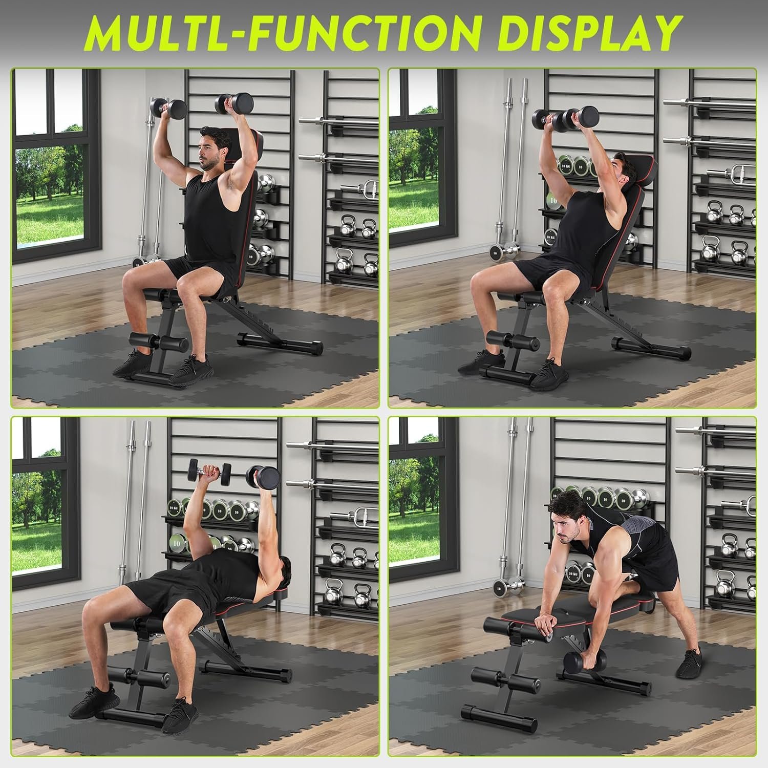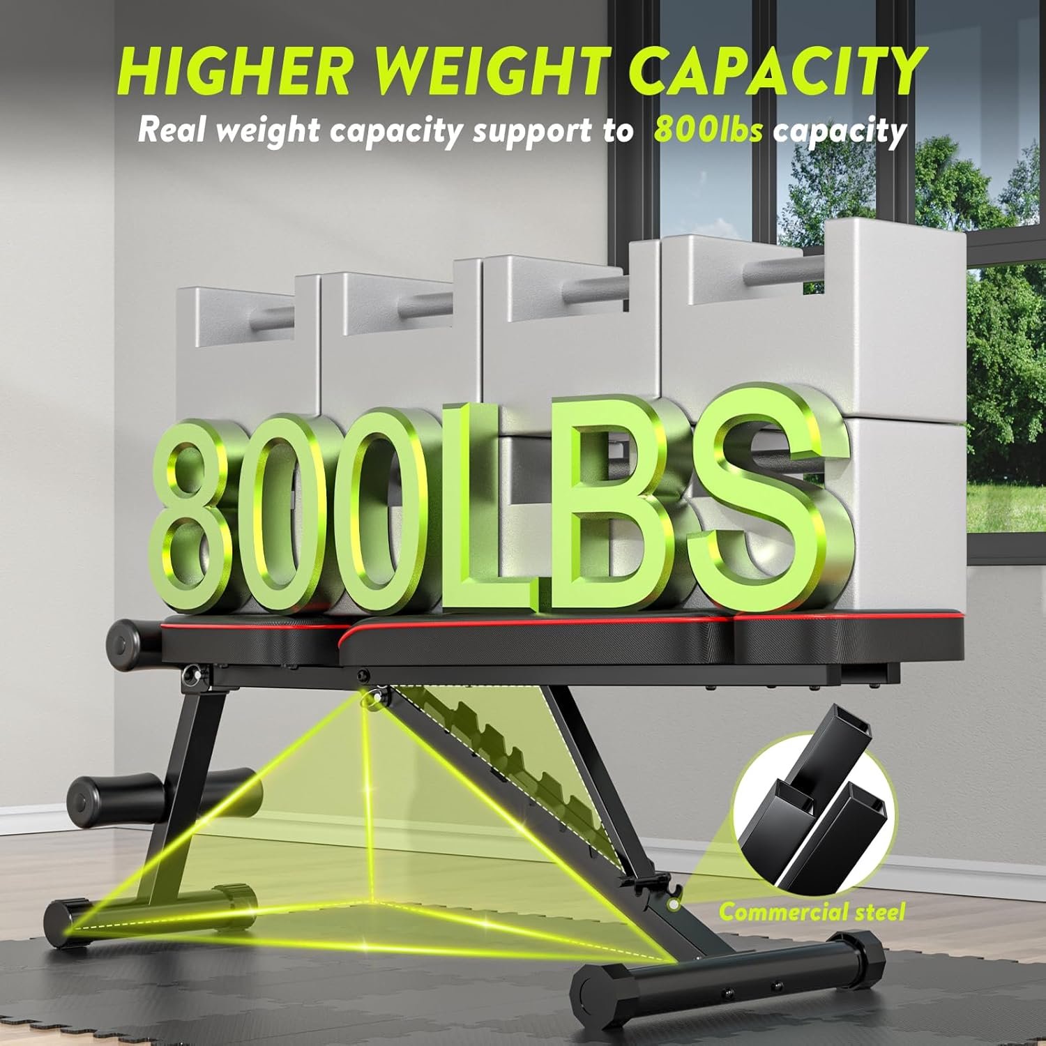 Foldable Weight Bench Press, Adjustable Workout Bench, Multi-functional Exercise Bench for Home Gym, Incline Decline Bench for Full Body Workout, 800lbs Weight Capacity