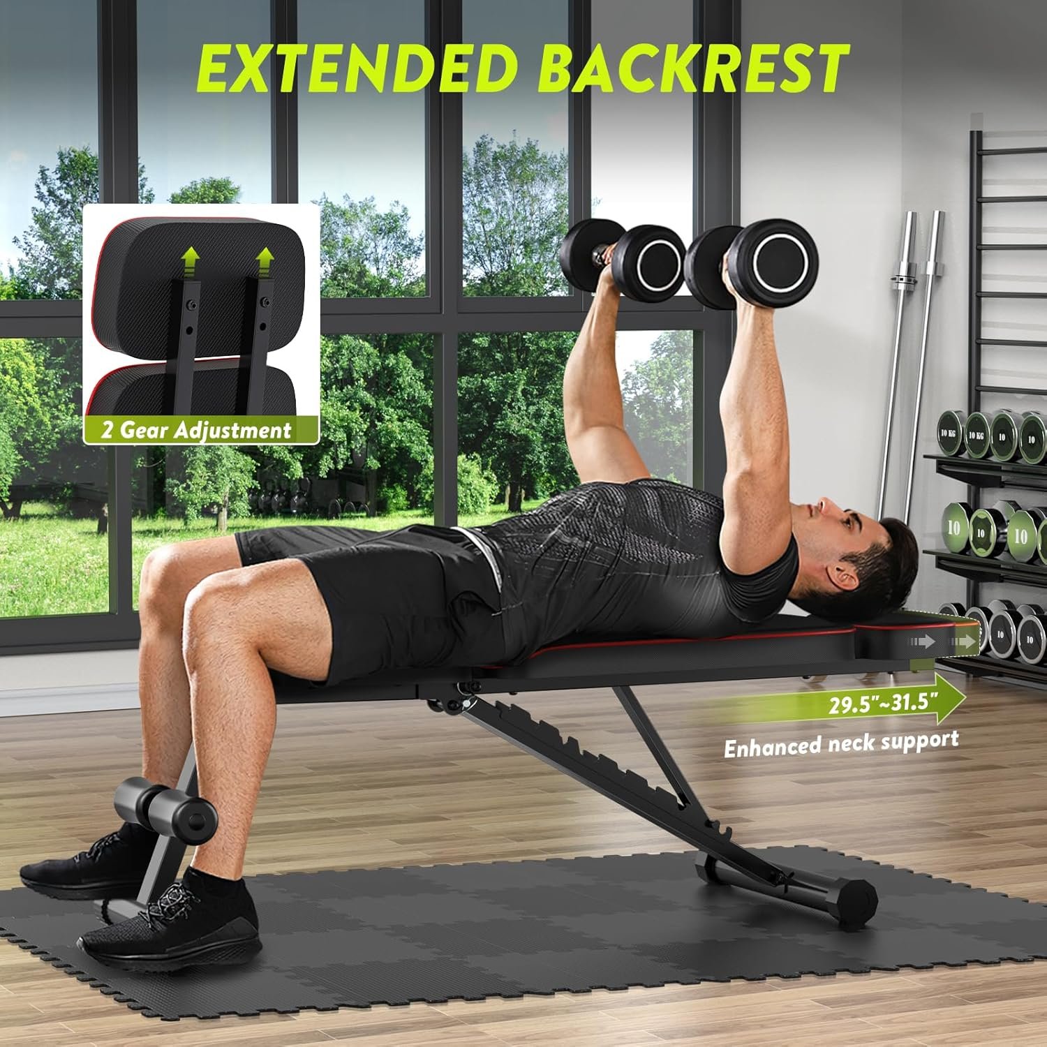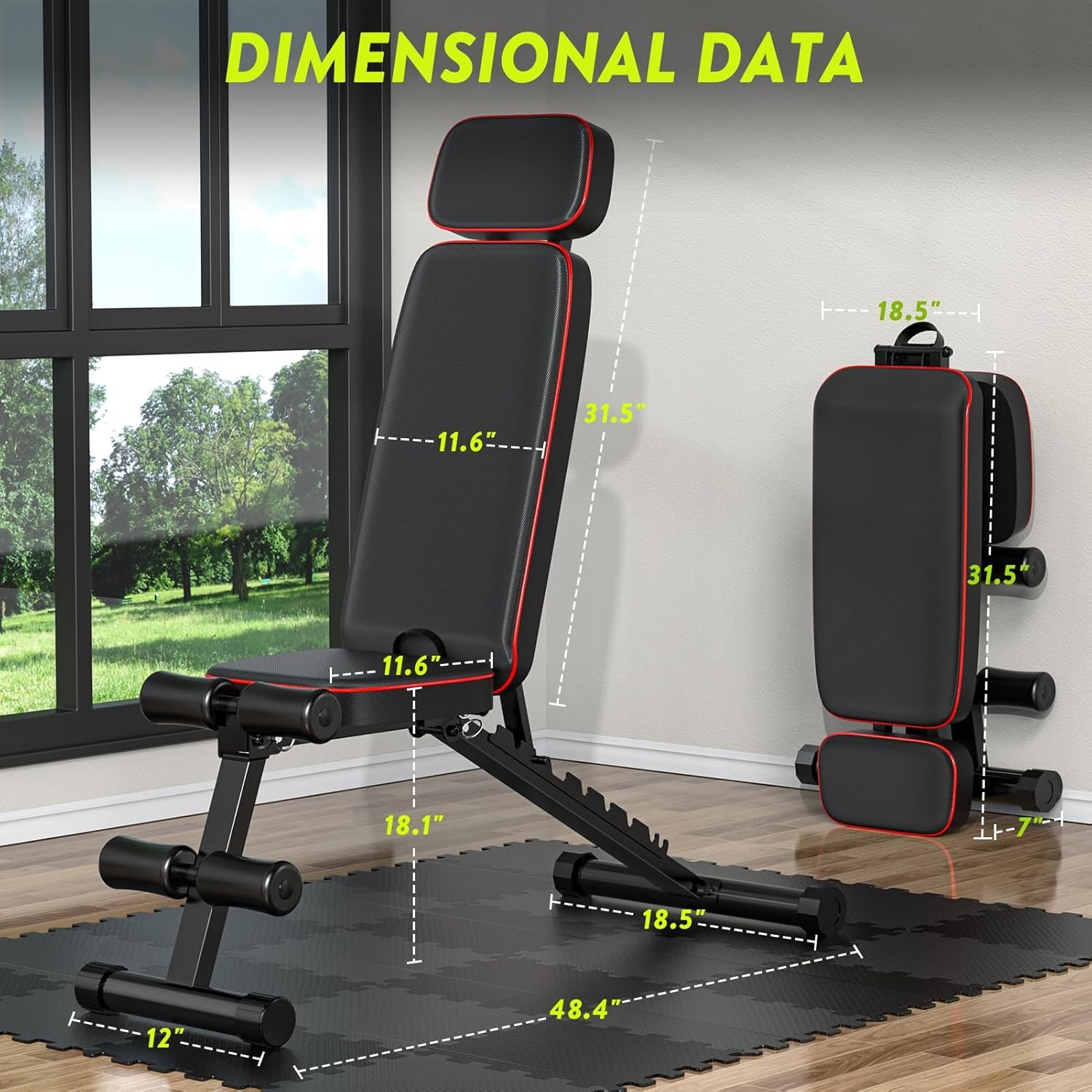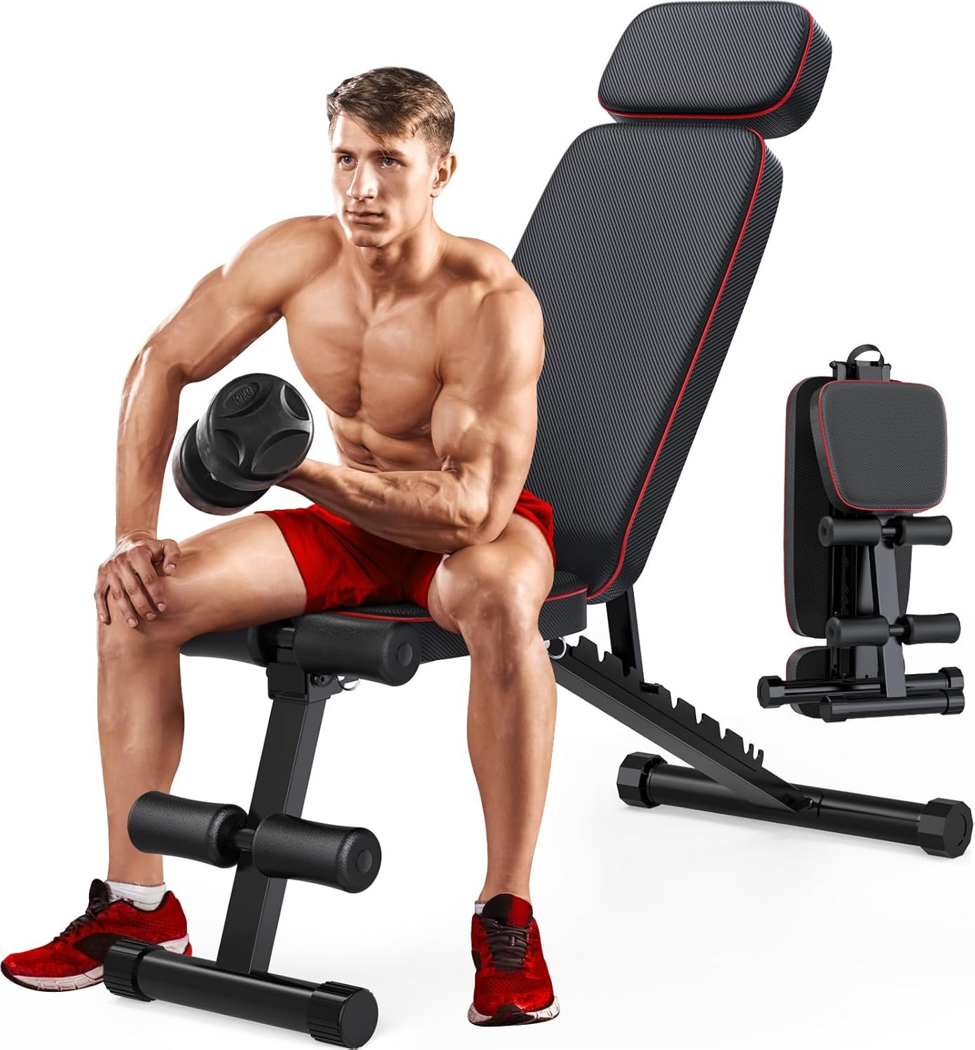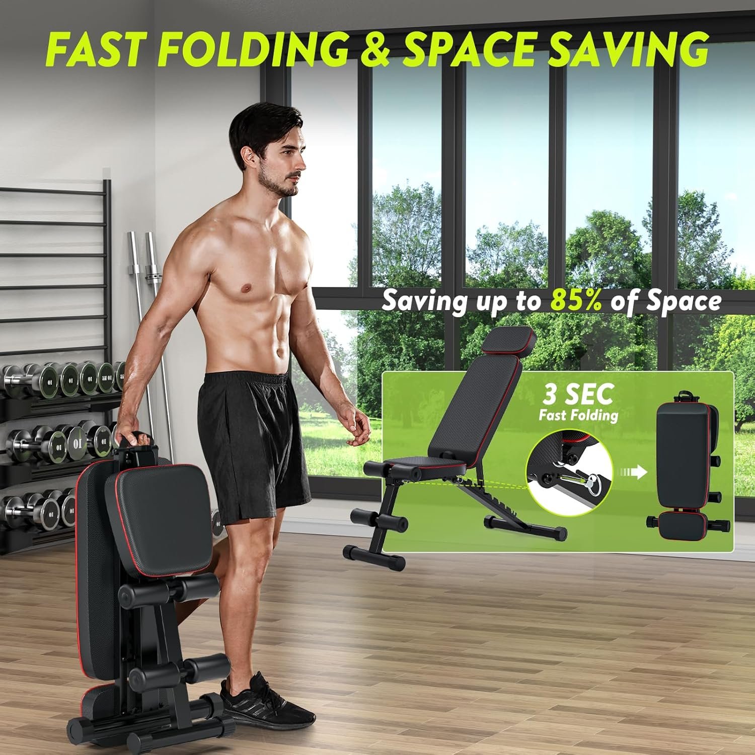 Foldable Weight Bench Press, Adjustable Workout Bench, Multi-functional Exercise Bench for Home Gym, Incline Decline Bench for Full Body Workout, 800lbs Weight Capacity