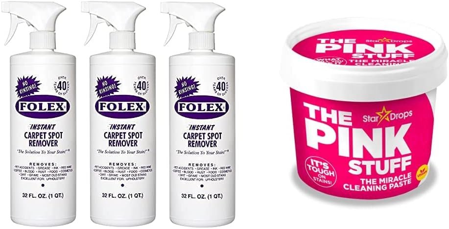 Removes pet accidents, grease, oil, ink and more from carpets (Folex); Works like a miracle to remove stains from various surfaces (The Pink Stuff)