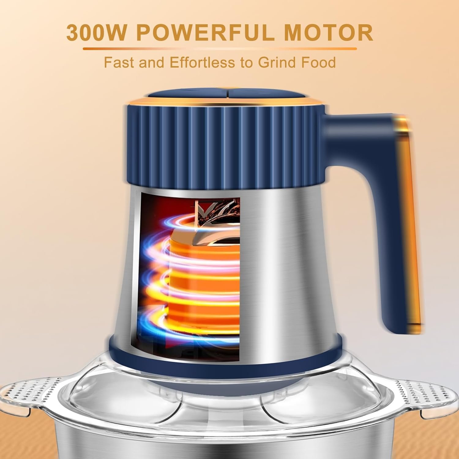 SUPER FAST PROCESSING: This powerful 300W meat grinder has ultra fast processing capabilities and can chop ingredients in 6-8 seconds to save time. The S-shaped 4-layer stainless steel blade can quickly and evenly chop, mix, mash, blend, and chop ingredients