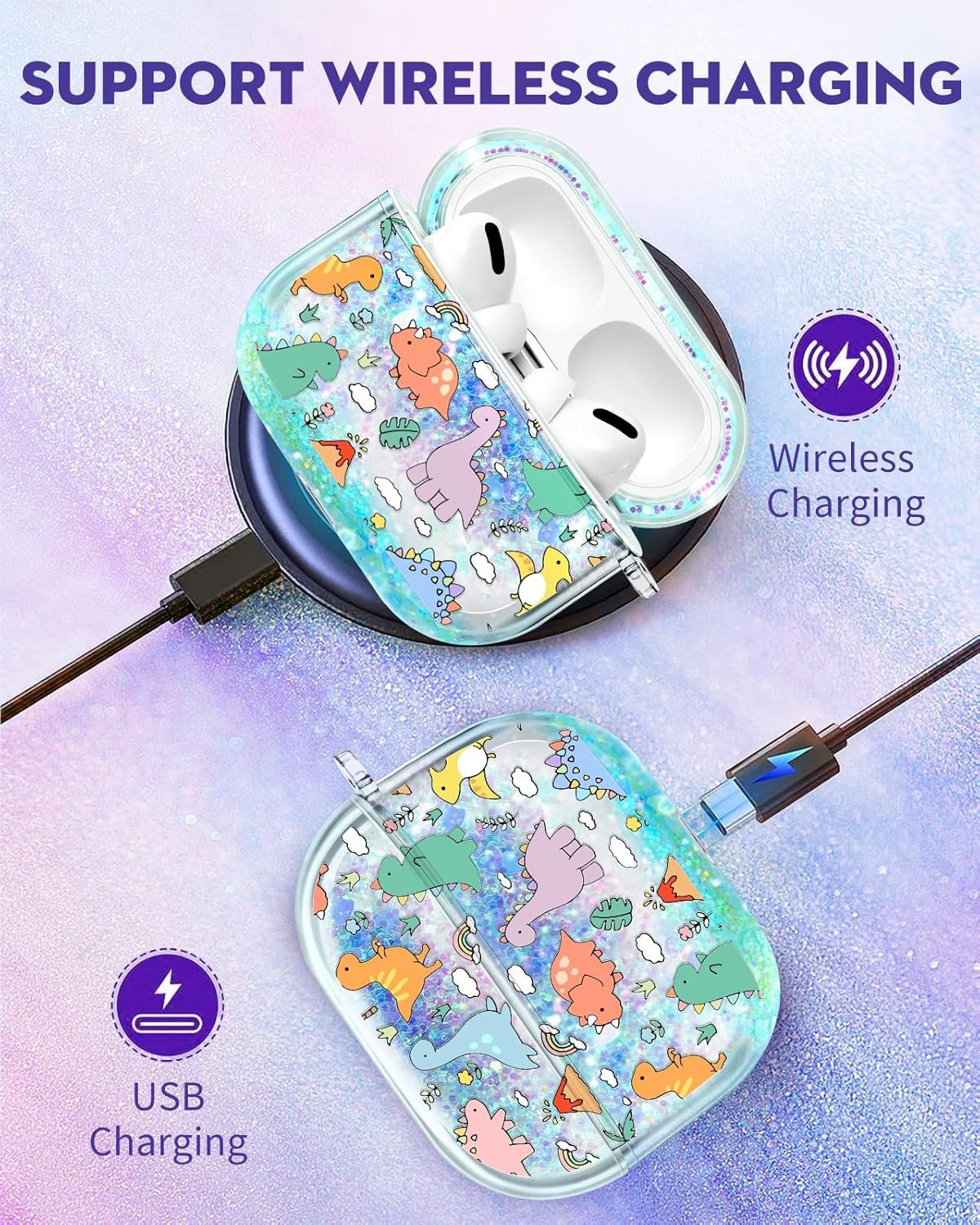 Support Wireless Charging: This kawaii and girly airpod Pro 2 case fits well with the Air Pods Pro Pro2 without creating extra bulk or com. Promising their wireless charging, and it also support USB charging with this protective case.