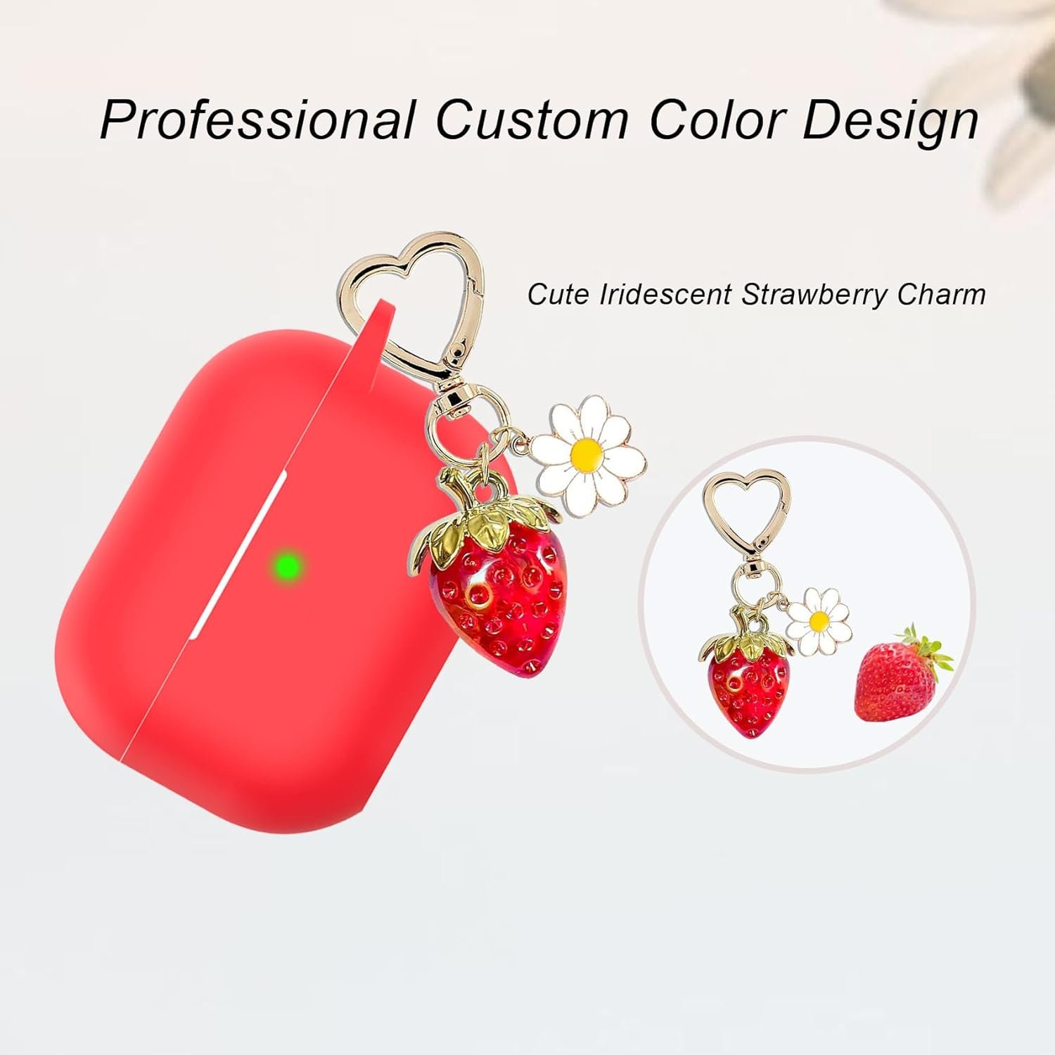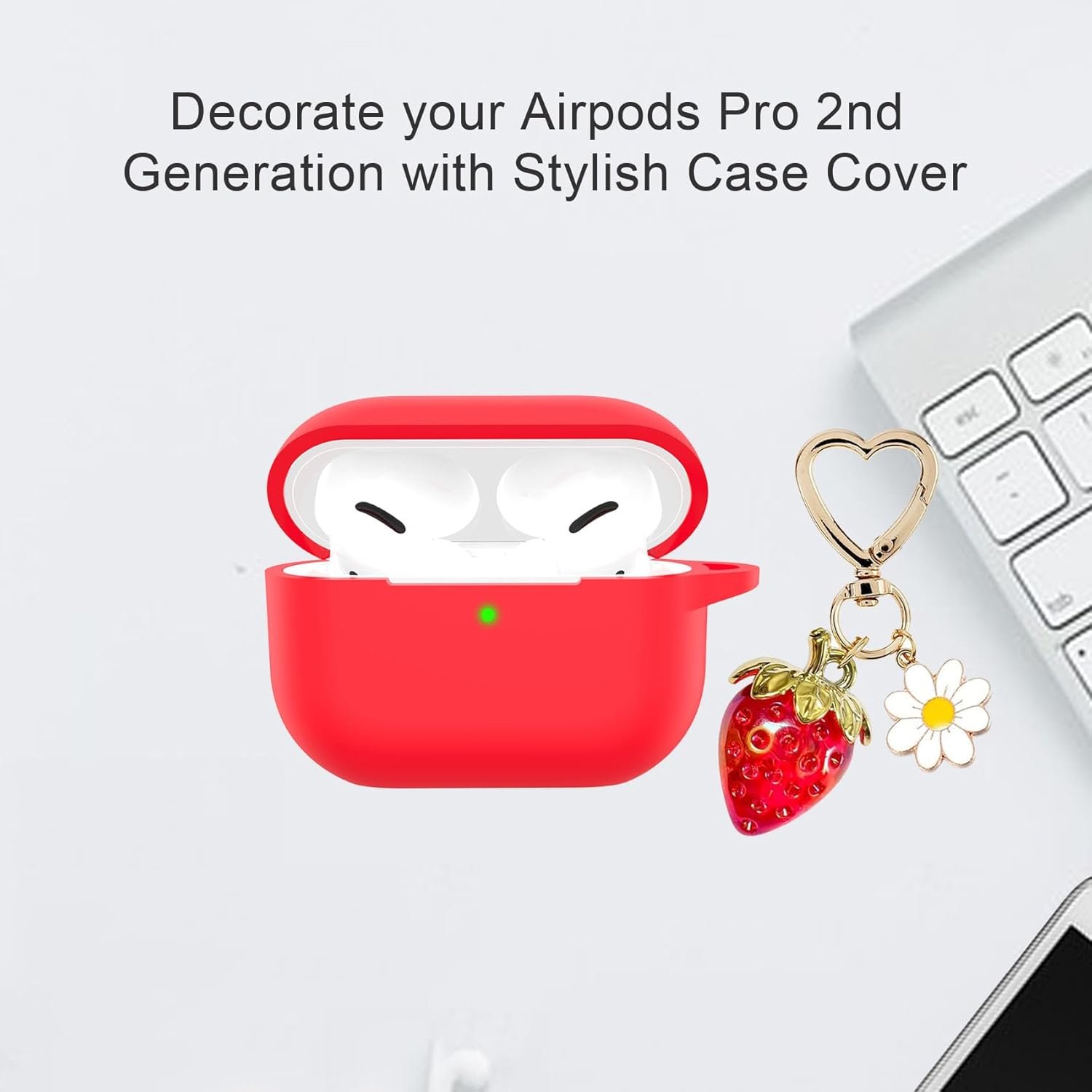 Airpods Pro 2nd Generation Case Cover with Cute Strawberry Charm Keychain