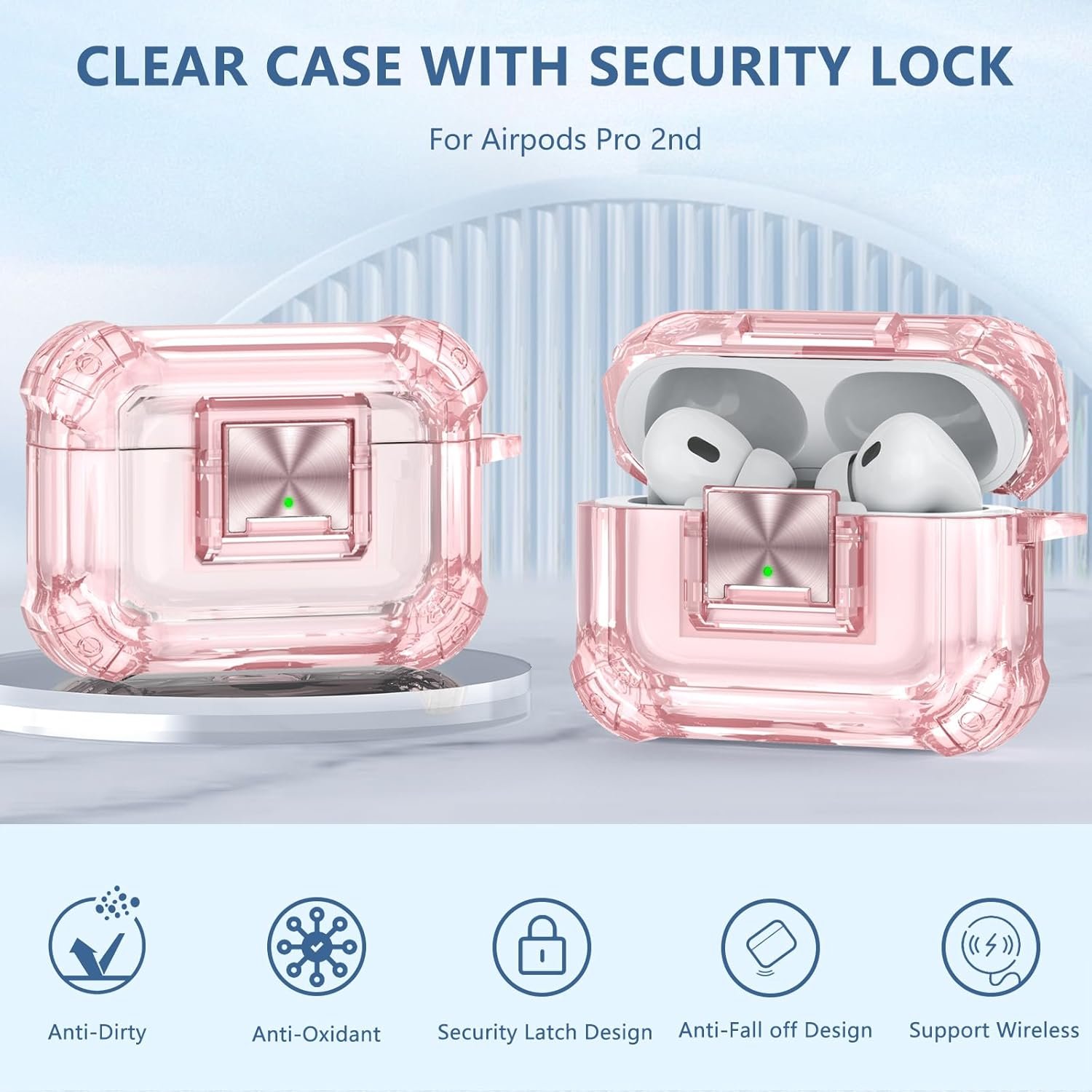 【Secure lock&Easy to carry】Never worry about losing your AirPods Pro 2nd again!Our clear case equiped with a new secret lock design,preventing the top lid from falling off accidentally.We also added Lanyard and metal keychain to help you to carry your airpods pro 2 case anywhere conveniently.
