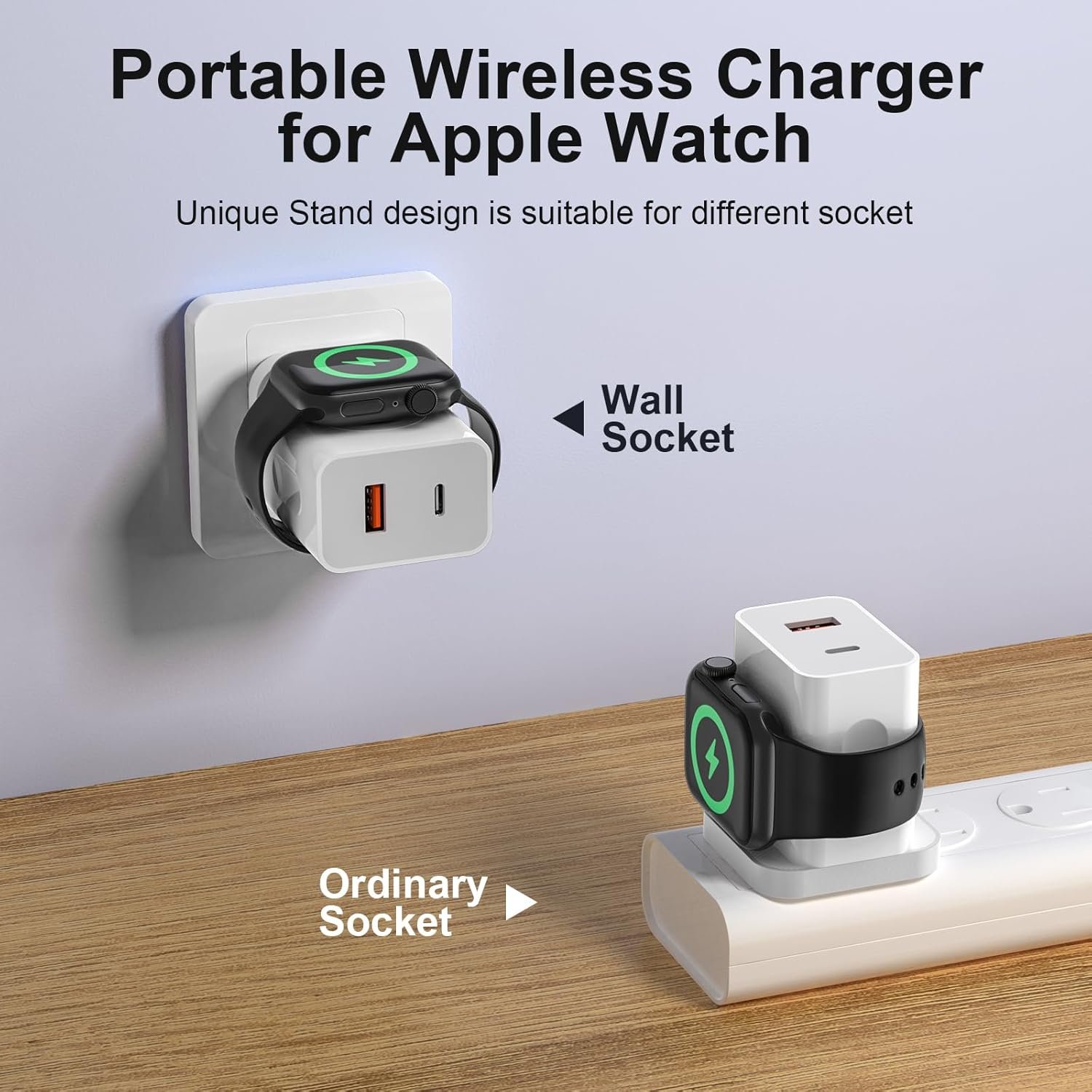 This portable wall charger block is compatible with Apple Watch series, iWatch Series 8 / iWatch SE (New) / iWatch 7 / iWatch Nike / iWatch 6/5 / iWatch Hermes / iWatch SE / iWatch Ultra, as well as iPhone 14/13/12/11 se and Android phones, and tablets. It is the only charger you need when going out