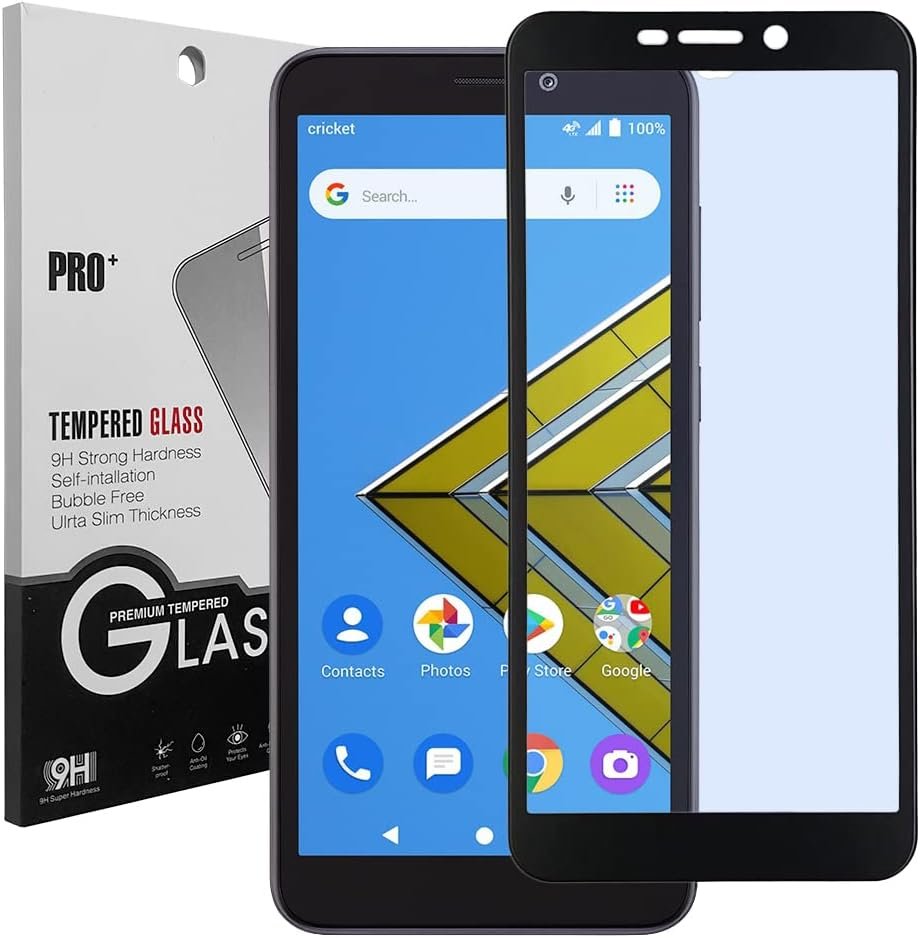 CELZEN – For AT&T Calypso U318AA, Radiant Core U304A, Cricket Icon, Vision 2, Vision 3, Wiko Ride – Full Glue Tempered Glass Screen Protector – Black Frame