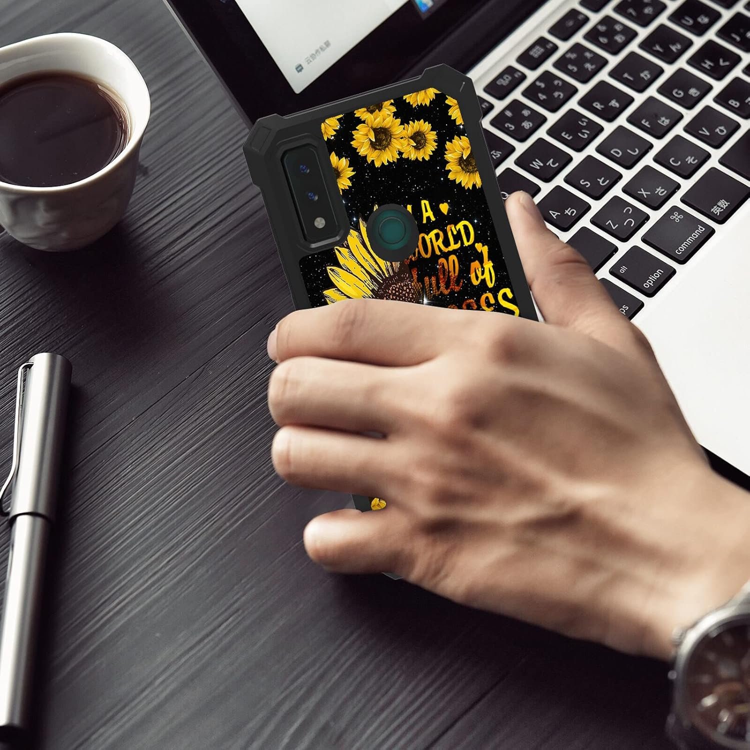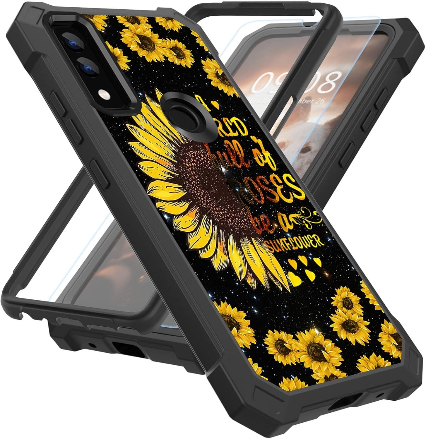 for AT&T Maestro 3 Phone Case with Screen Protector (Tempered Glass), Slim TPU Rugged Corners Bumper Cover for AT&T Maestro 3 (U626AA)-Sunflower Quote