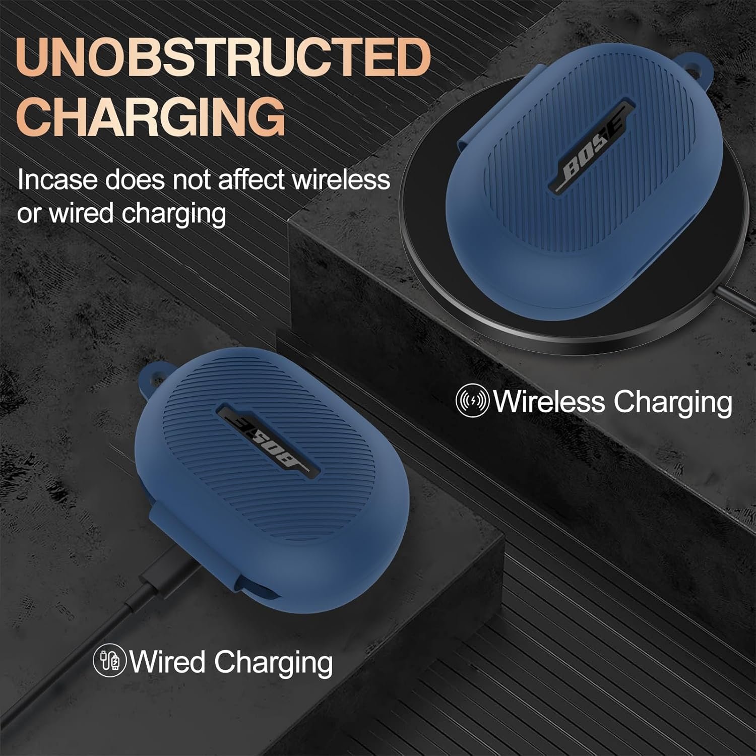 UNOBSTRUCTED CHARGING: This silicone case perfectly fit with Bose New QuietComfort earbuds while has reserved precise cutout for the charging port, fast charge your headphones without removing the case. Front LED & Top LOGO visible.
