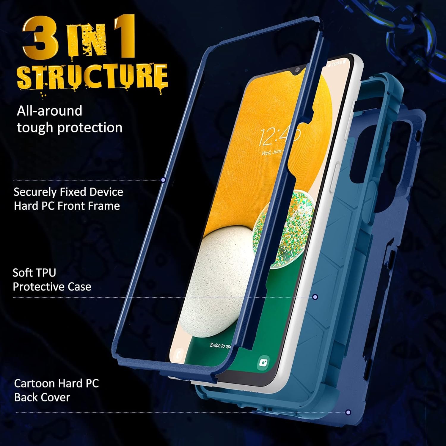 【Triple Layers Protection From Any Angles】 All-around tough protection with Designed Pattern is stylish & unique and not that too bulky and heavy duty. The 3 in 1 military grade design safely guard your Samsung Galaxy A14 from serious drop, bumps, wear and tear and random accidents.