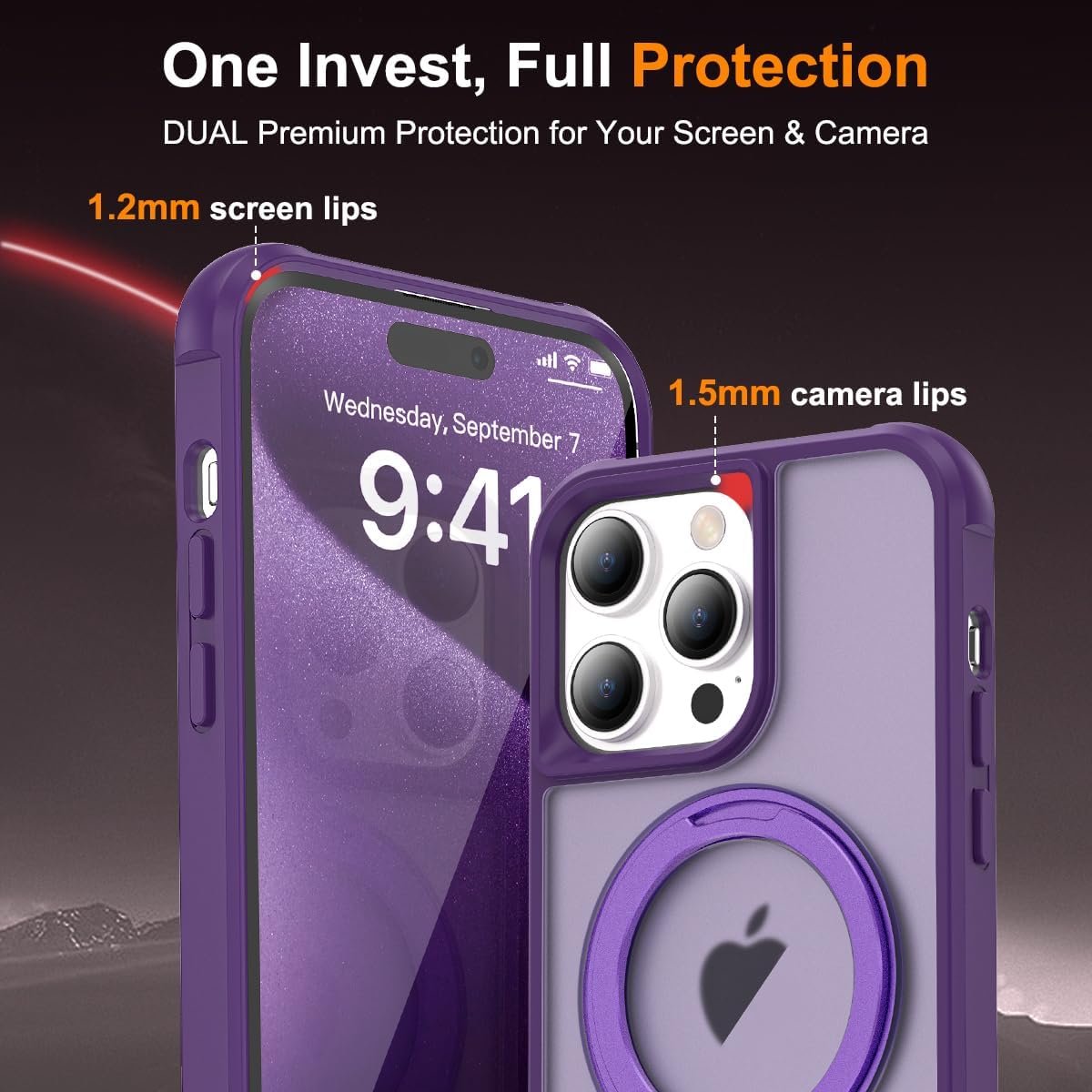![for iPhone 15 Pro Case 6.1 Inches 360°Rotatable Magnetic Ring Invisible Stand,[Compatible with Mag-Safe] Military Shockproof Frosted Translucent Case,Purple - Image 2](https://topleaseyou.store/wp-content/uploads/2024/11/81VQ83dLzJL._AC_SL1500_.jpg)
