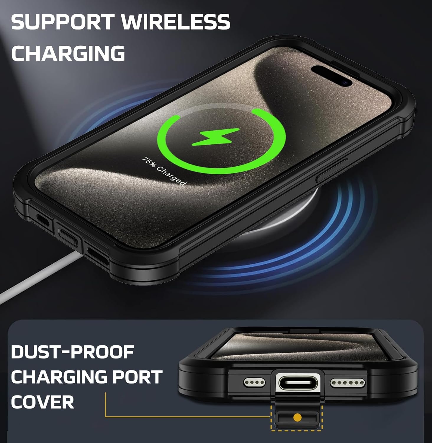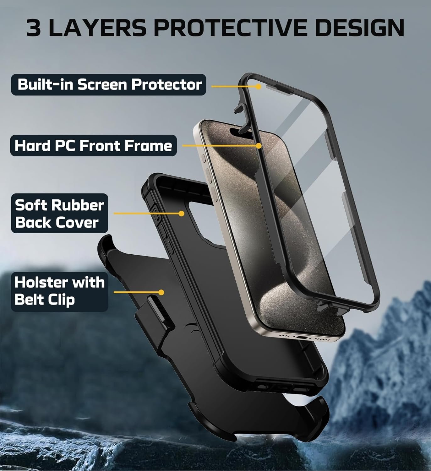 [Military-Grade Protection] This iPhone 15 Pro Max phone case exceed military specifications for shock resistance and pass the 20-Foot Drop Test. Our phone case is made of dual-layered TPU and Polycarbonate materials to provide heavy-duty drop protection against accidental damage. The four reinforcement angles are beveled to distribute 99% of the impact force. The raised edges of the entire body resist everyday friction. The ergonomic design of the TPU edge provides excellent grip without slipping.