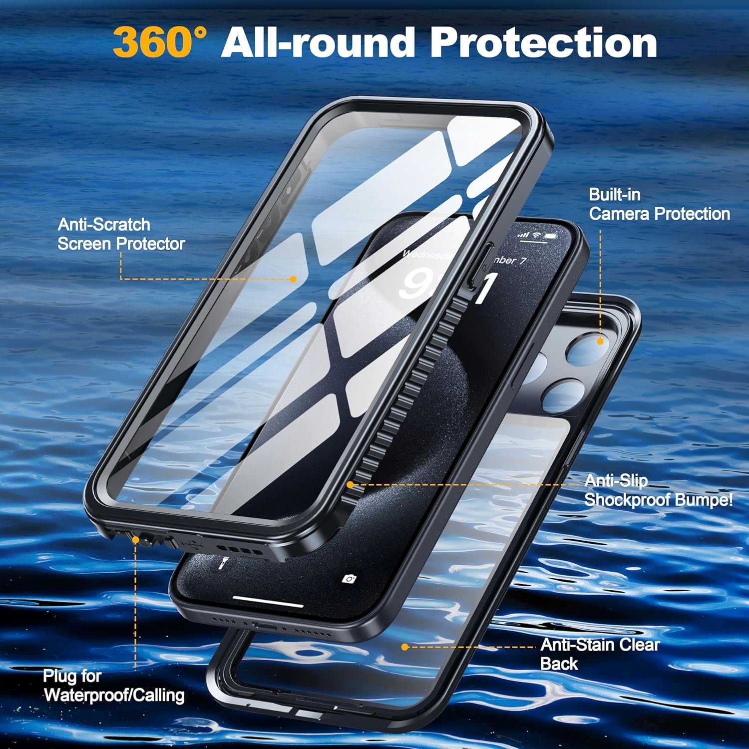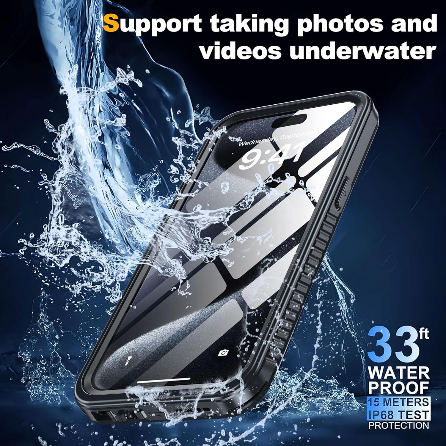 ✨【IP68 Waterproof】This iPhone 15 Pro Max case is IP68 waterproof certified, submersible to a depth of 10 feet/3 m for 1 hour, providing full-body waterproof protection, and it meets IP68 dustproof and continuous submersion protection ratings. Supports underwater photography, swimming, snorkeling, surfing, etc. Plus, the washable design ensures easy cleaning, so your phone and case always stay clean and look like new.