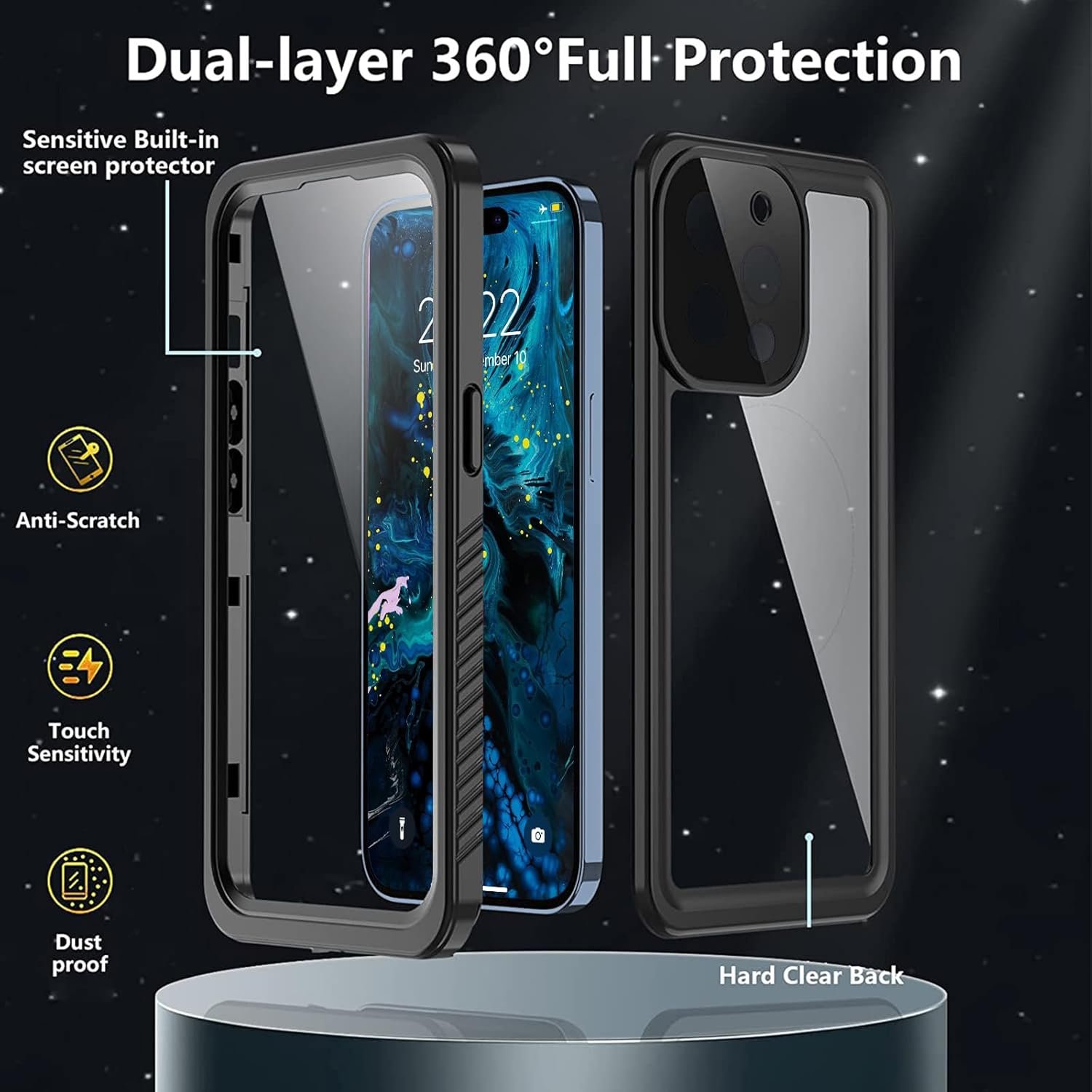 for iPhone 15 Pro Max Case Waterproof, Built-in Screen Protector Full Sealed Cover, Shockproof IP68 Waterproof Clear Case for iPhone 15 Pro Max 6.7 inch