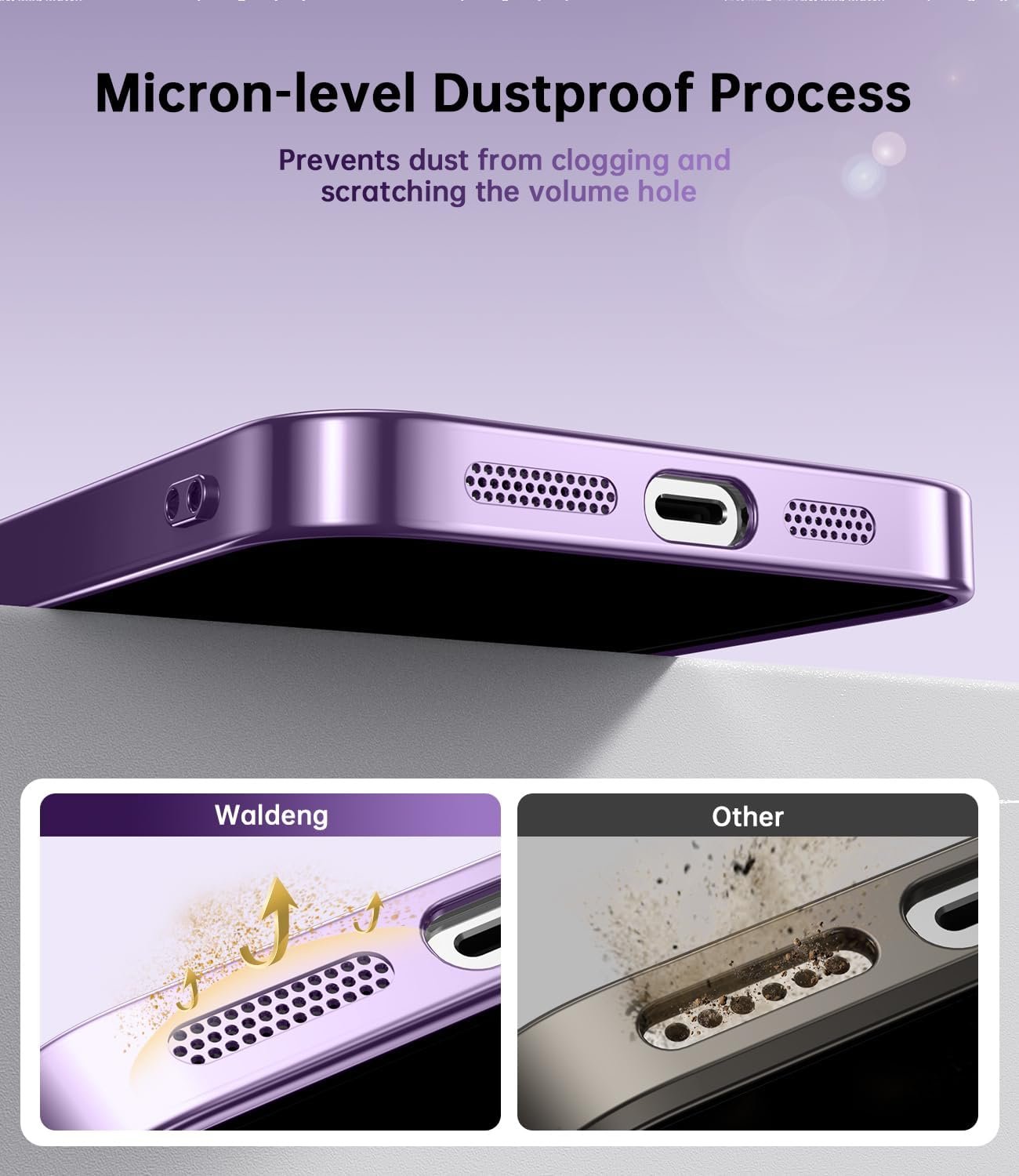 Waldeng for iPhone 15 Pro Max Case with Integrated Camera Lens Protection, [Seamless Work with Magsafe] [Metallic Glossy Soft Bumper], Diamond Clear Stylish Case for iPhone 15 Pro Max, Purple Titanium