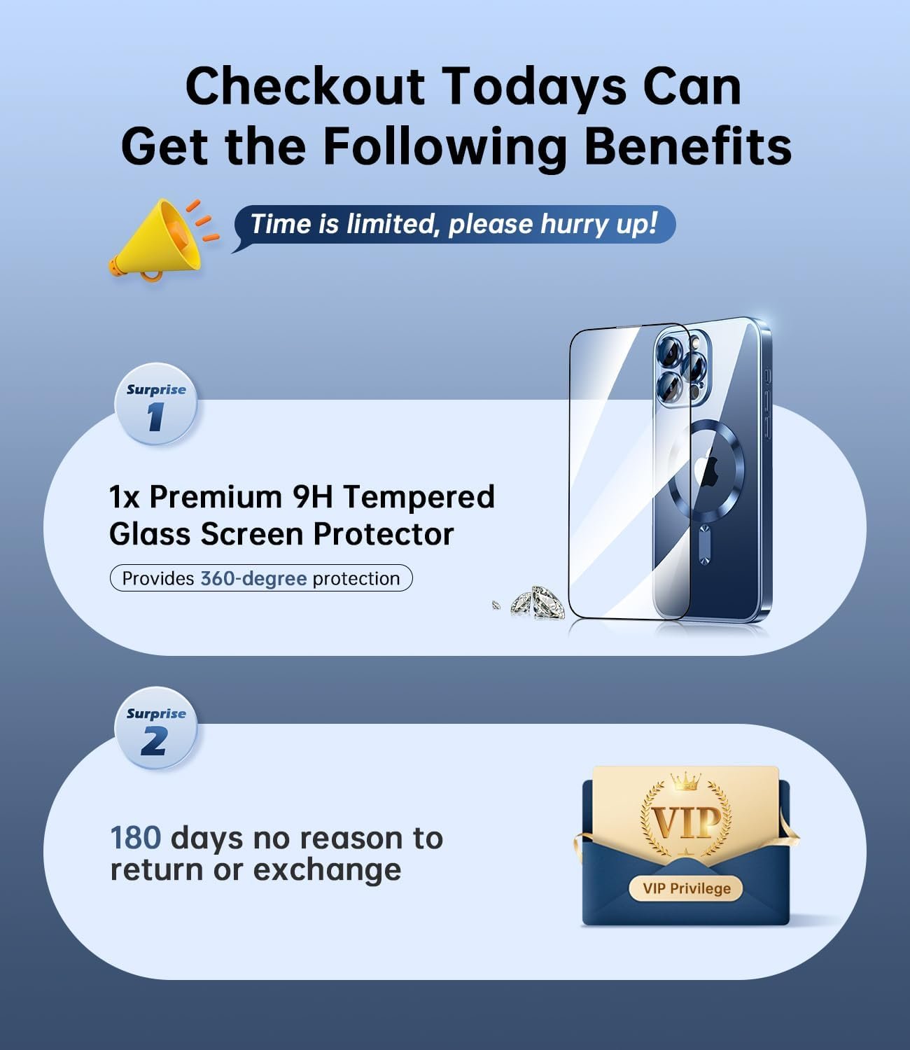The lens protectors are made of advanced 9H Glass and a diamond-grade high-density compression layer process. Provide full Camera lens protection and will not affect the quality of the photo. Nearly 4mm (2x higher than others) camera-raised bezels and 2mm screen-raised bezels prevent the screen and camera from scratches & friction. Extremely extend the service life of your phone cameras.