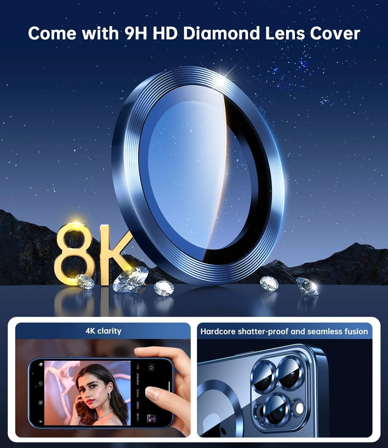 Come with 9H HD Dimond Camera Cover.