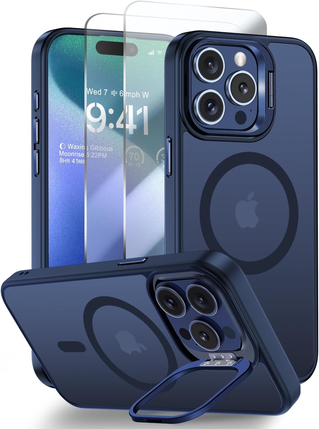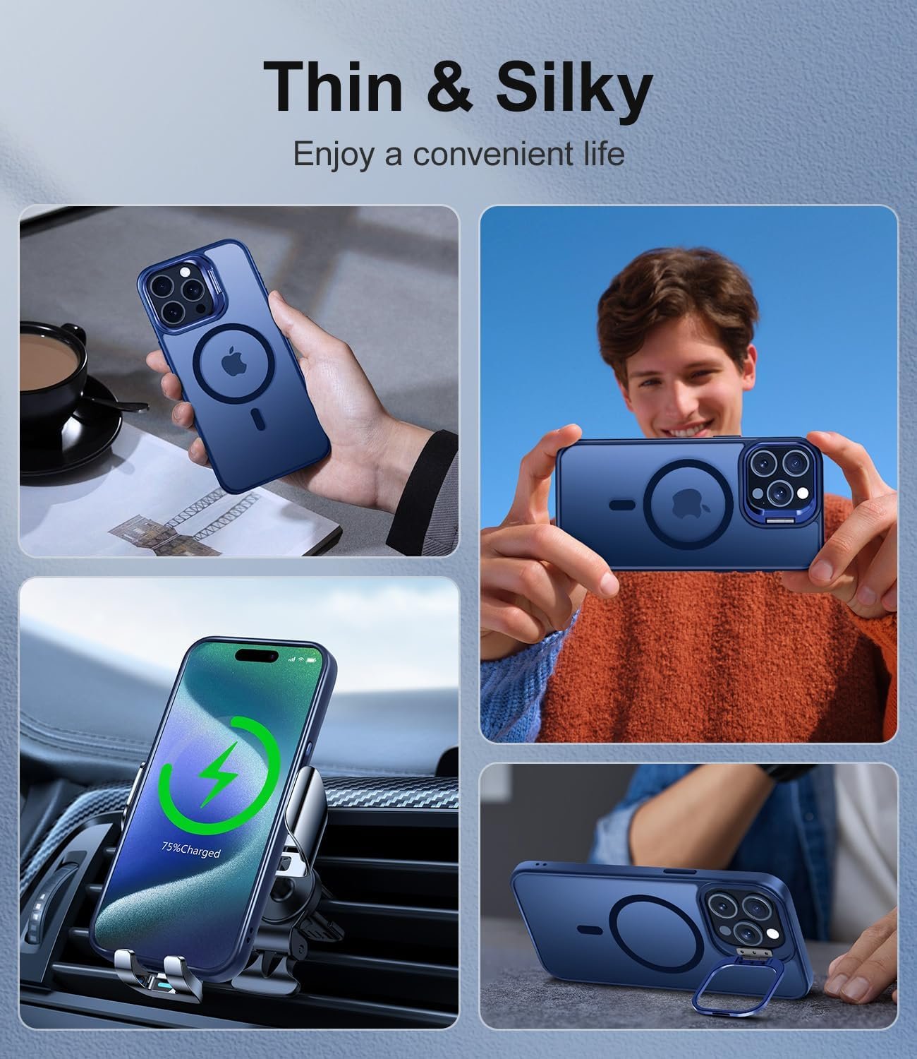 [STRONG MAGNETIC EXPERIENCE]: This iPhone 15 Pro Max Stand Case has a built-in N52 magnet, which is twice as strong as the official case, to quickly connect to a variety of Magsafe accessories (such as a car charger or Magsafe wallet). Enjoy fast Magsafe charging with no power loss, while protecting the health of your battery.