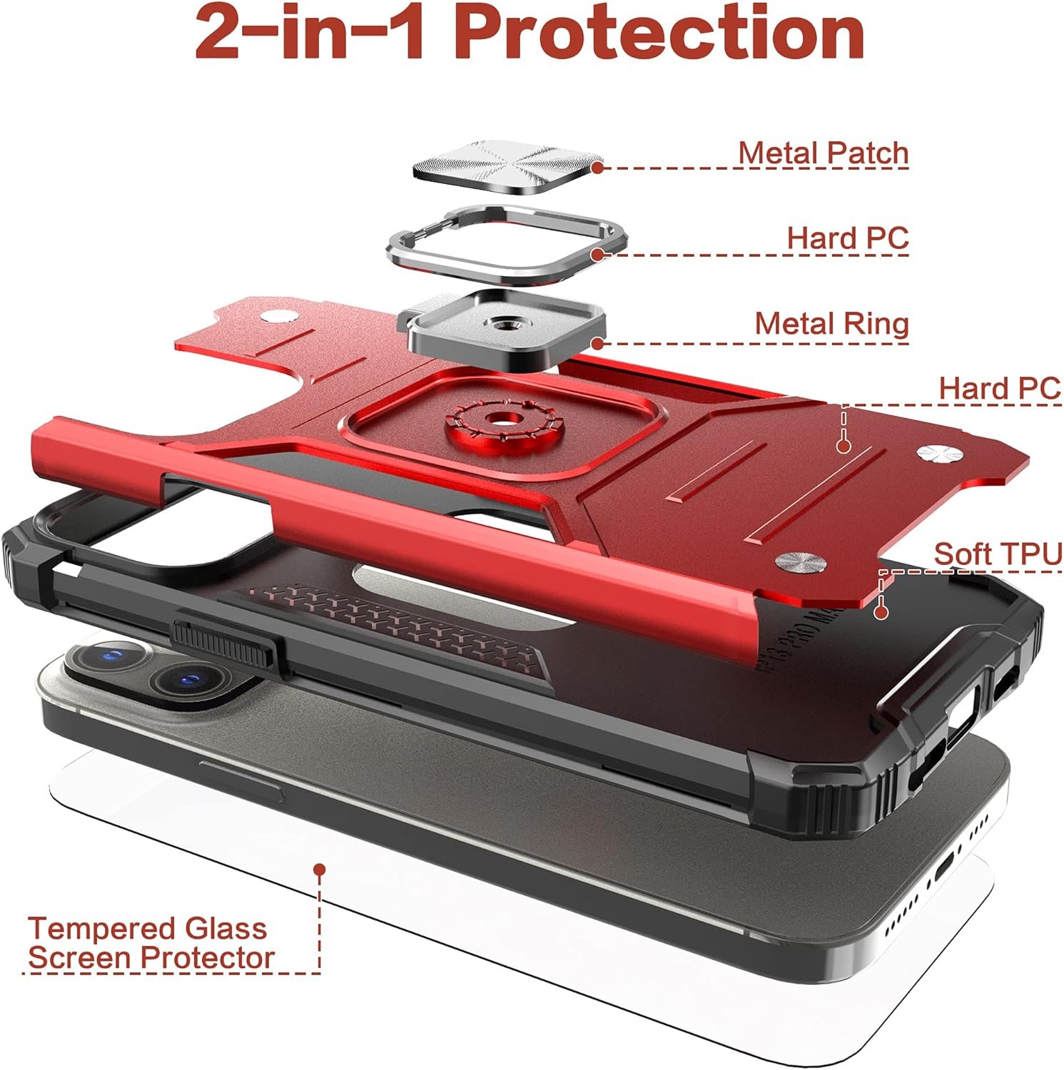 for iPhone 15 Pro Max Case with Screen Protector, Hybrid Drop Test Cover with Car Mount Kickstand Sturdy Shockproof Slim Fit Protective Phone Cover for iPhone 15 Pro Max,Red